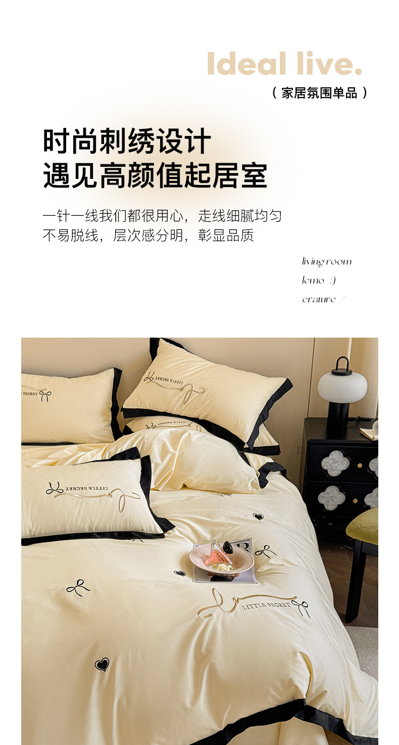 商品名称:理想家家纺 2025新款纯棉轻奢刺绣四件套-小秘密系列场景二 小秘密 黄