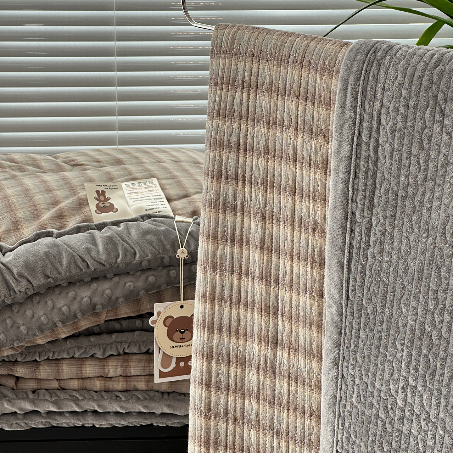 (总)佰织鑫家居 2025新款全棉纯棉色织水洗棉加绒床盖豆豆被四件套