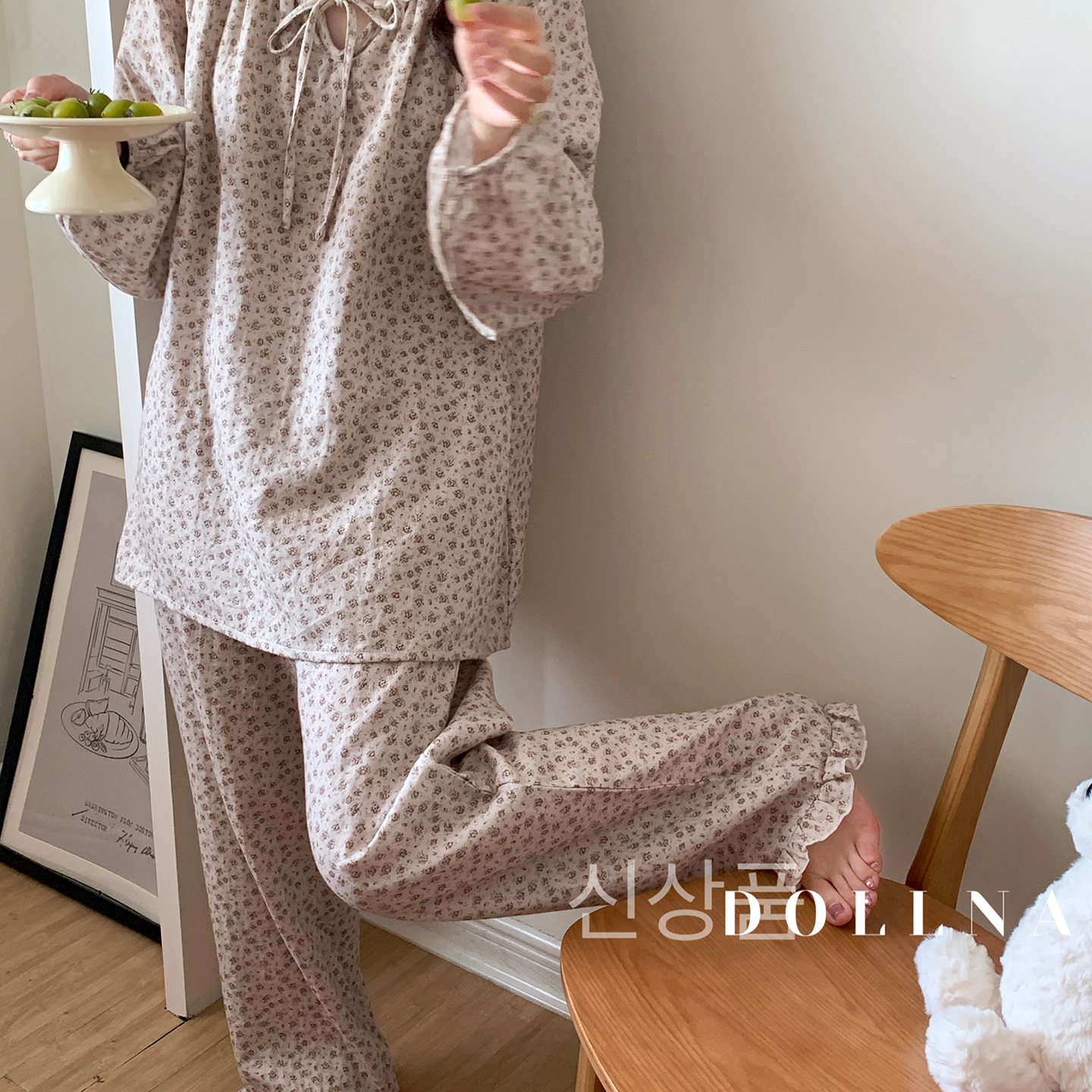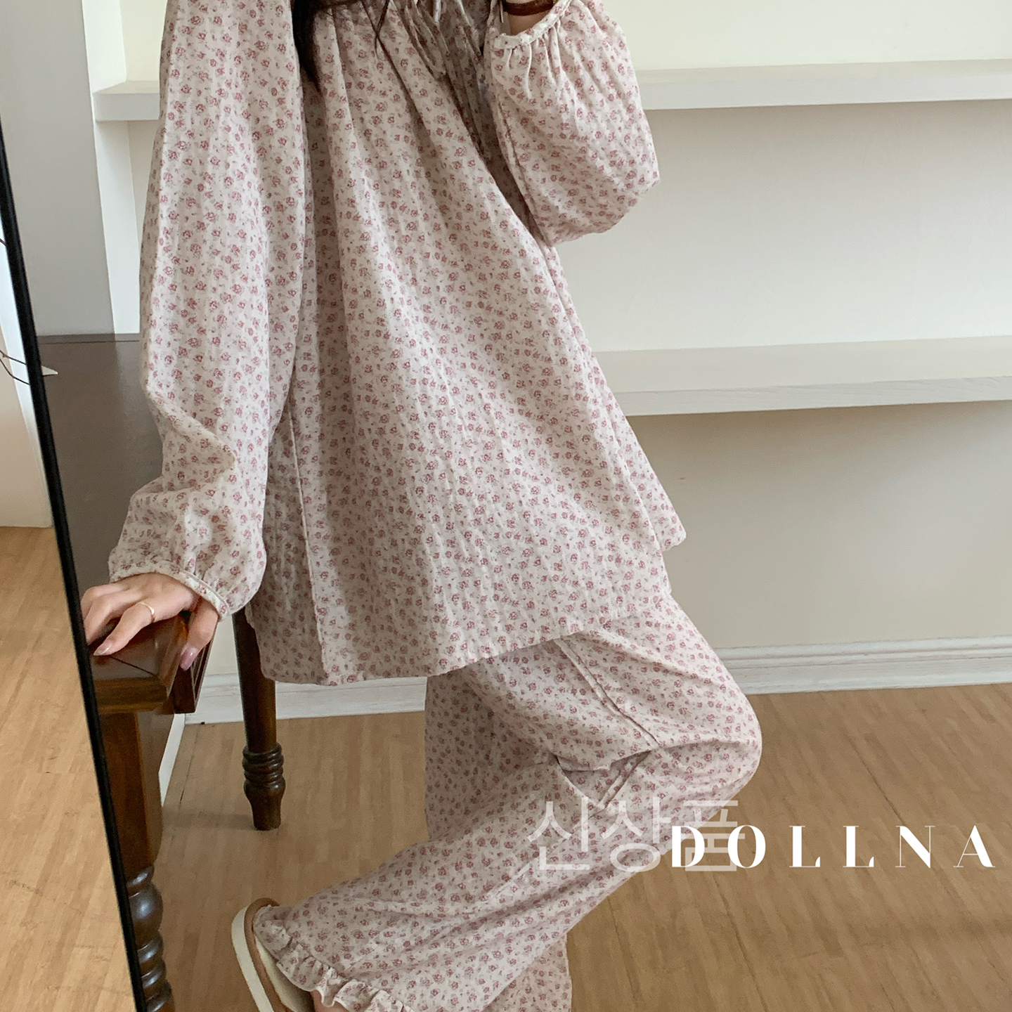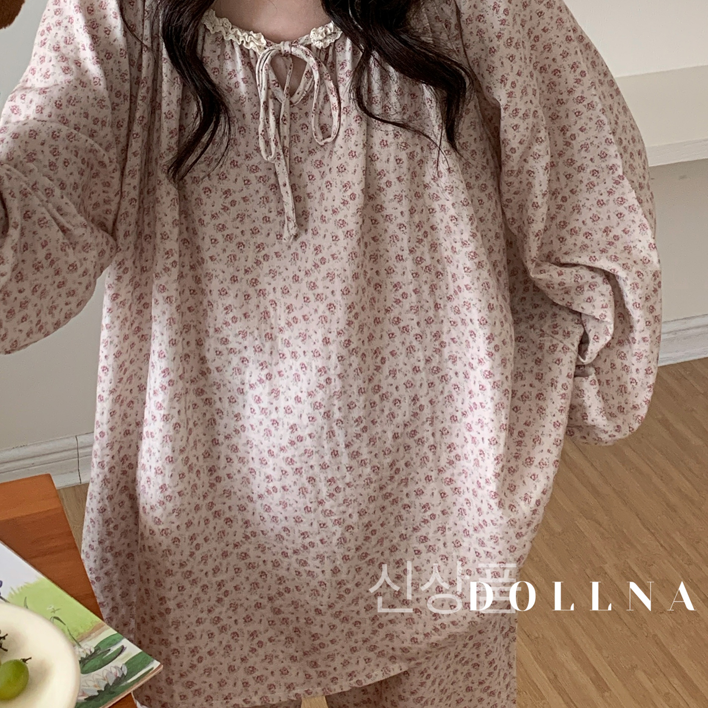 商品名称:多乐娜 2025新款法式纯棉厚织双层纱睡衣家居服套装(会员-5元) 厚织双层纱-小玫瑰粉