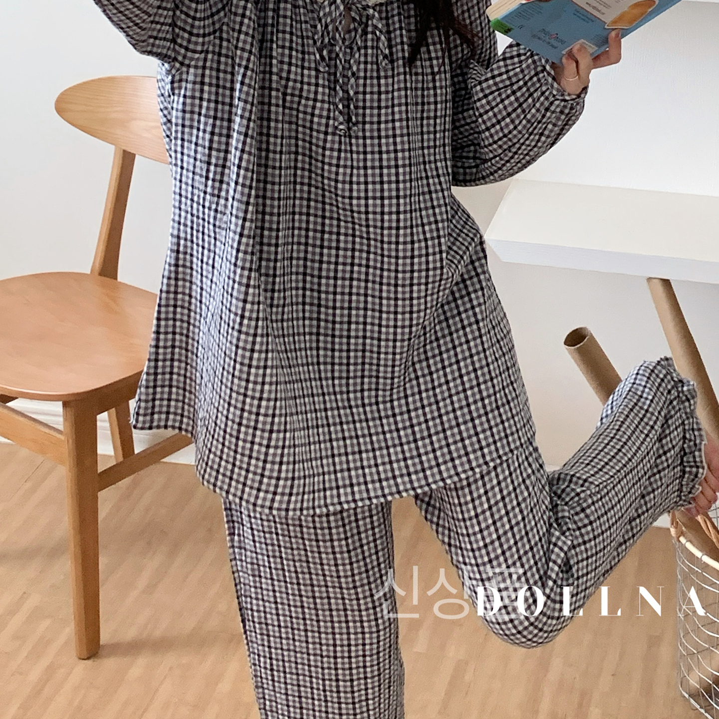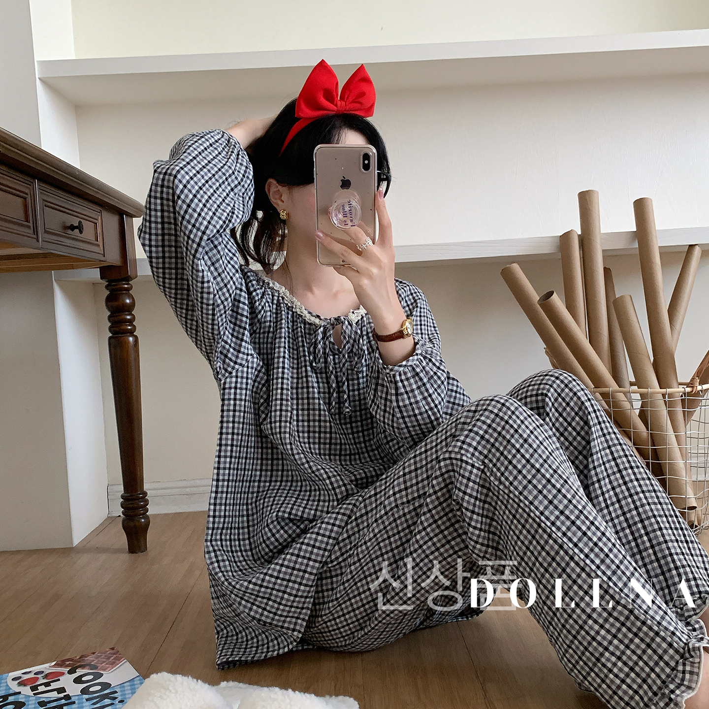 多乐娜 2025新款法式纯棉厚织双层纱睡衣家居服套装(会员-5元) 厚织双层纱-小玫瑰粉
