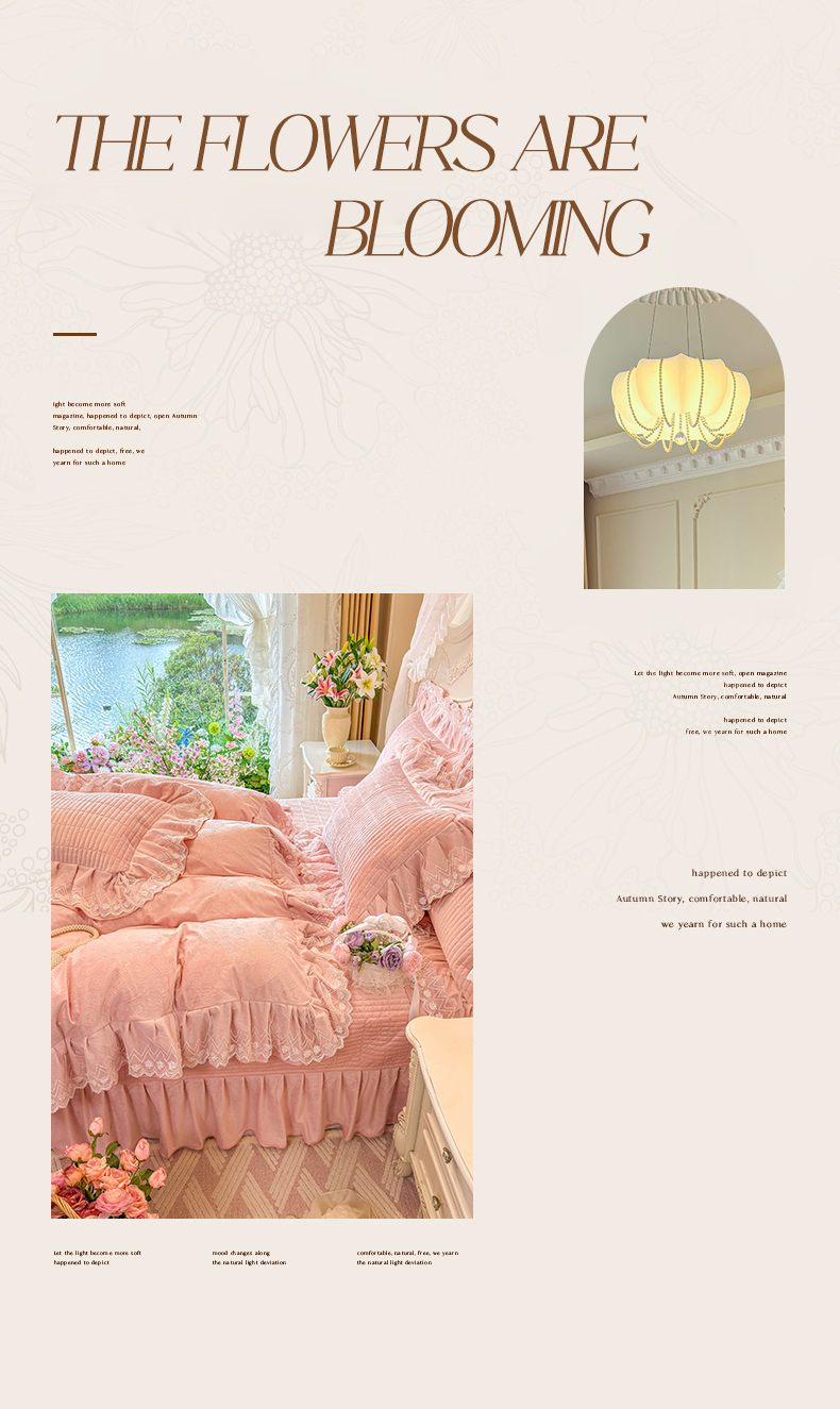 (总)宜凡家纺 2025新款全棉数码印花床裙四件套系列二,繁花似锦,春景熙熙,花间密语,花间柔光,满芯花溪,迷离夜色,婉如初见,雪域森林