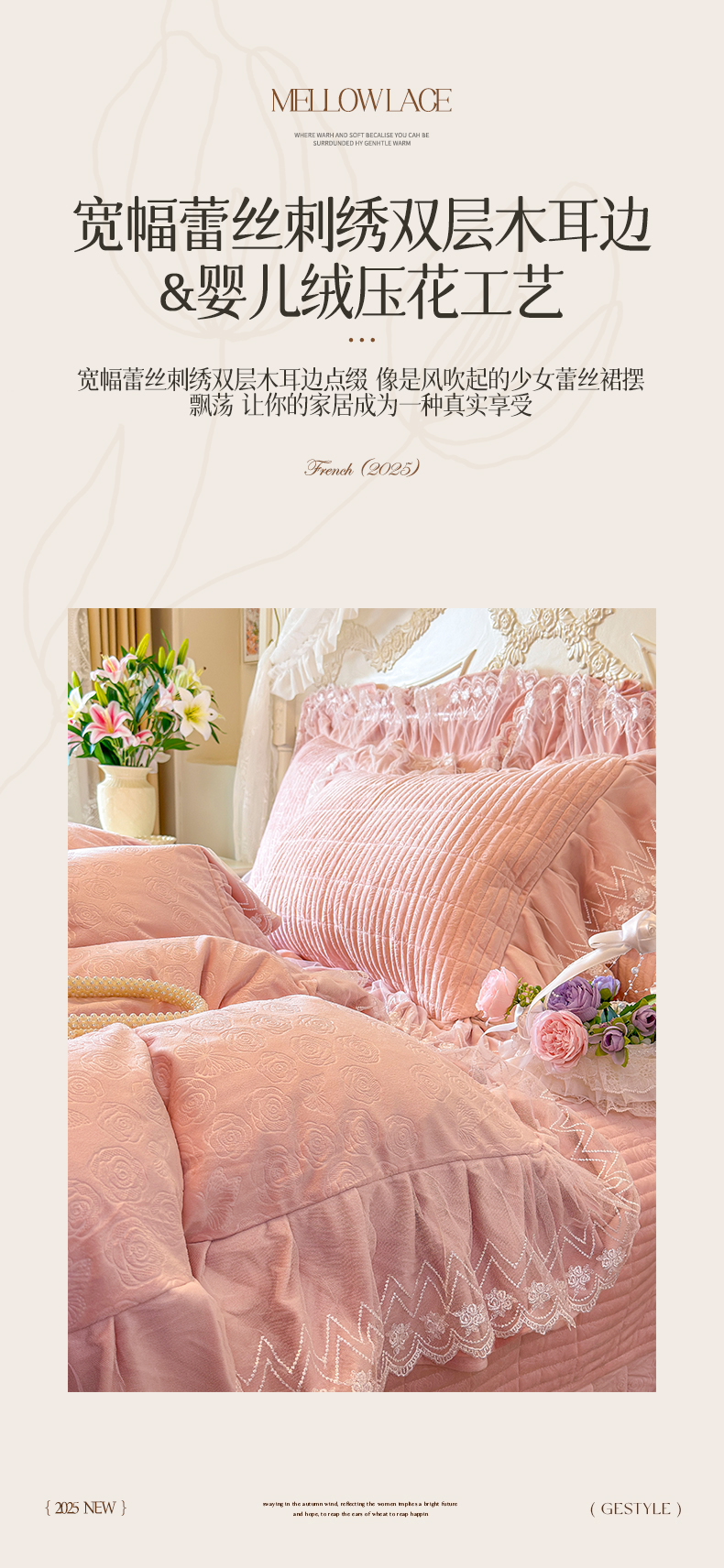 (总)宜凡家纺 2025新款全棉数码印花床裙三件套系列一,静若幽兰,浮云织梦,梦幻花园,陌上花开