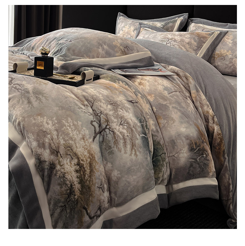 (总)绒城 绒城 2025新款 双拼角工艺数码牛奶绒四件套 拼角牛奶绒四件套-芳华系列