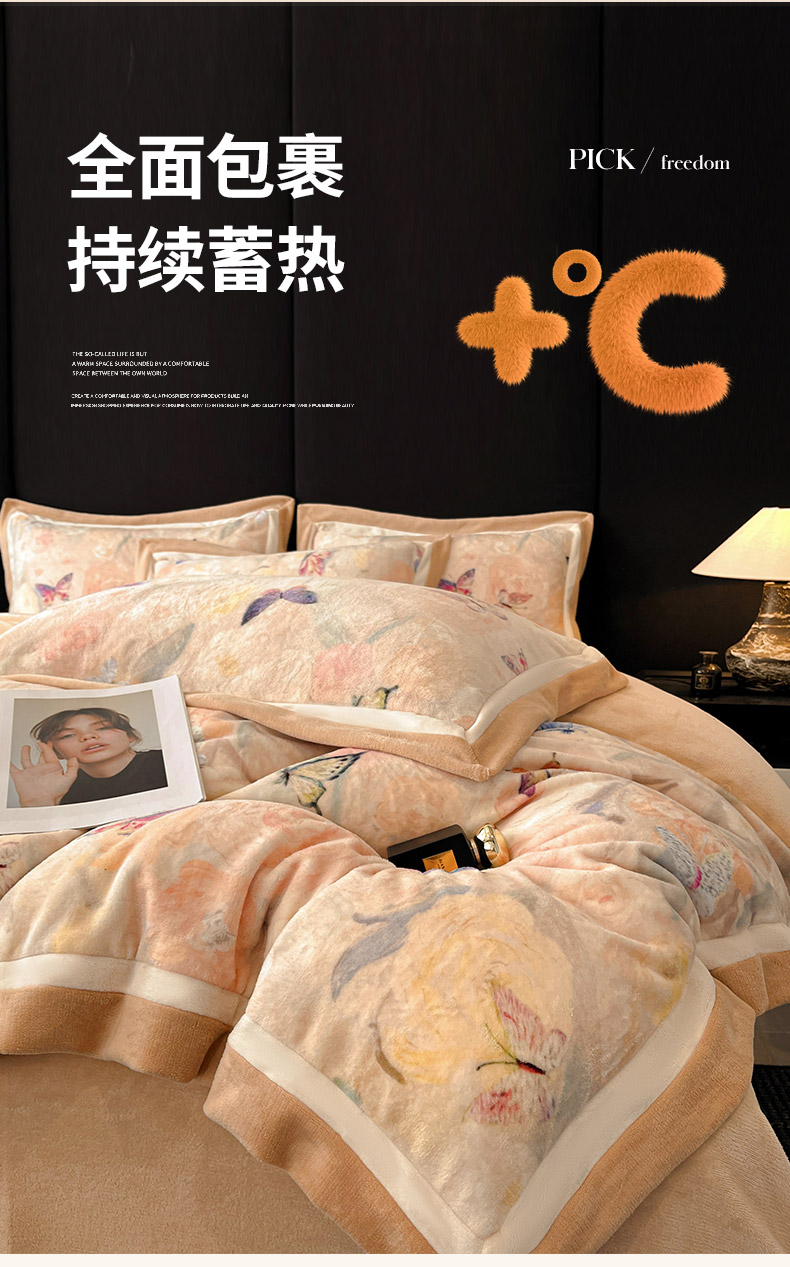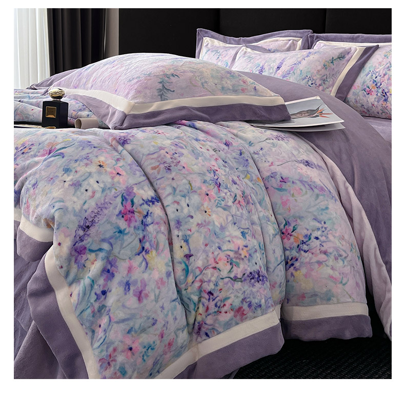 商品名称:(总)绒城 绒城 2025新款 双拼角工艺数码牛奶绒四件套 拼角牛奶绒四件套-芳华系列