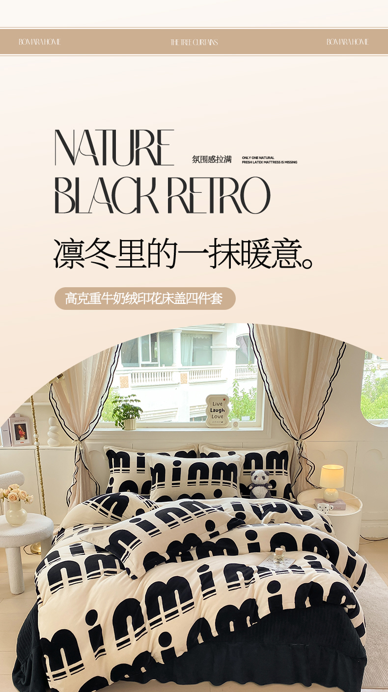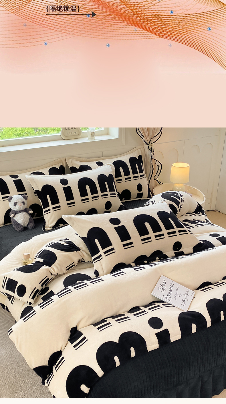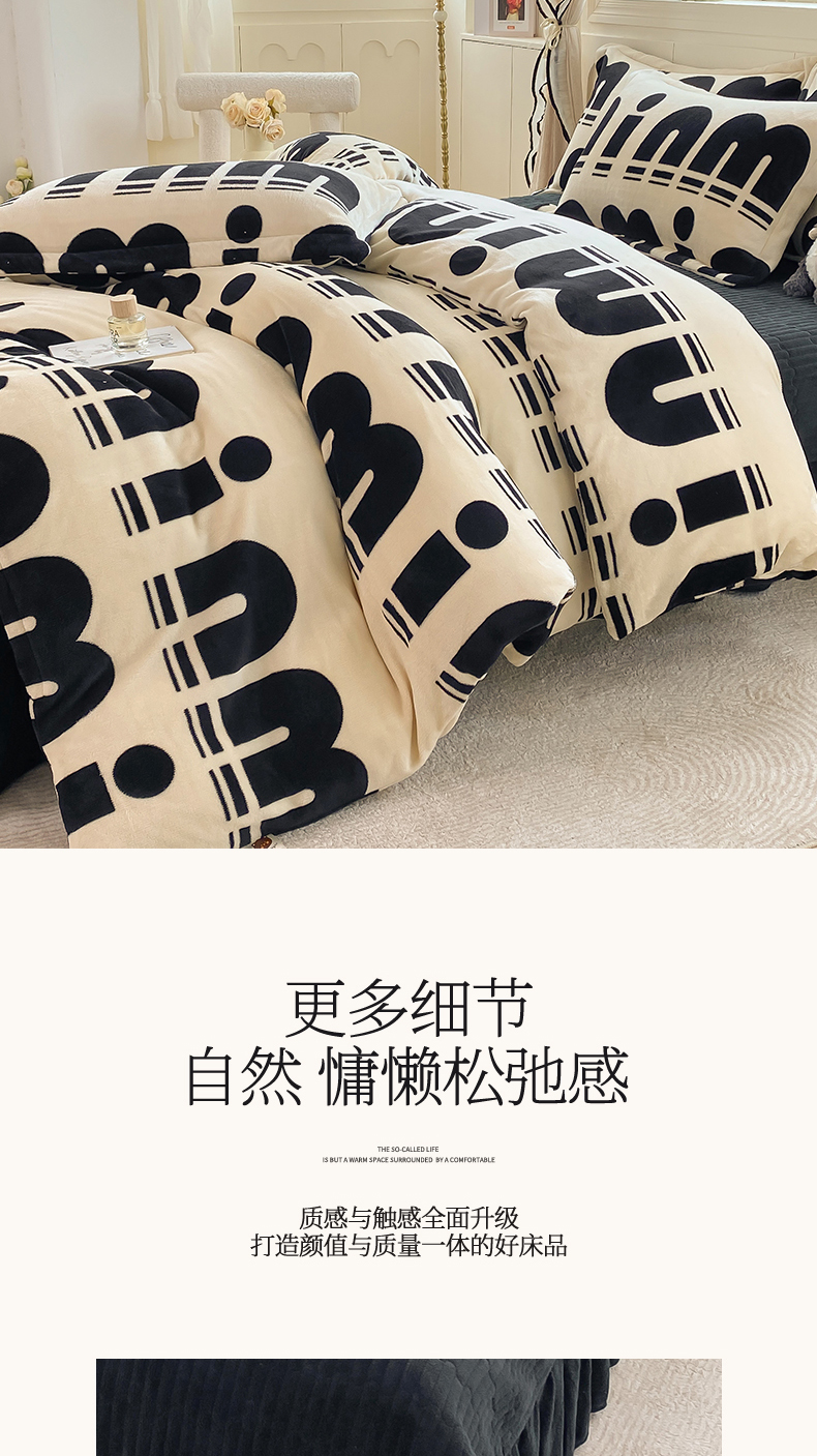 豫见家纺 2025新款高克重牛奶绒夹棉床盖四件套 新潮风尚