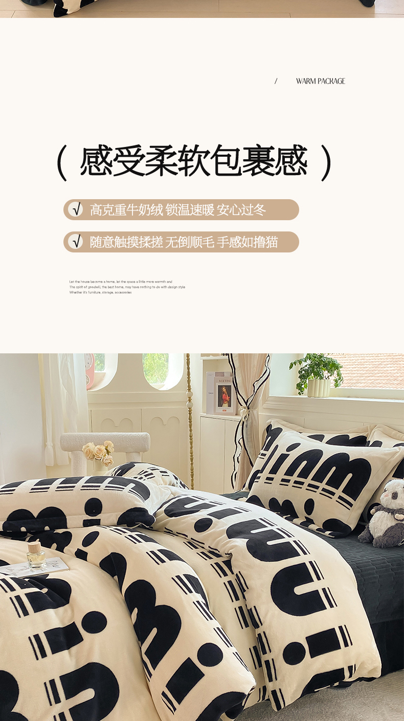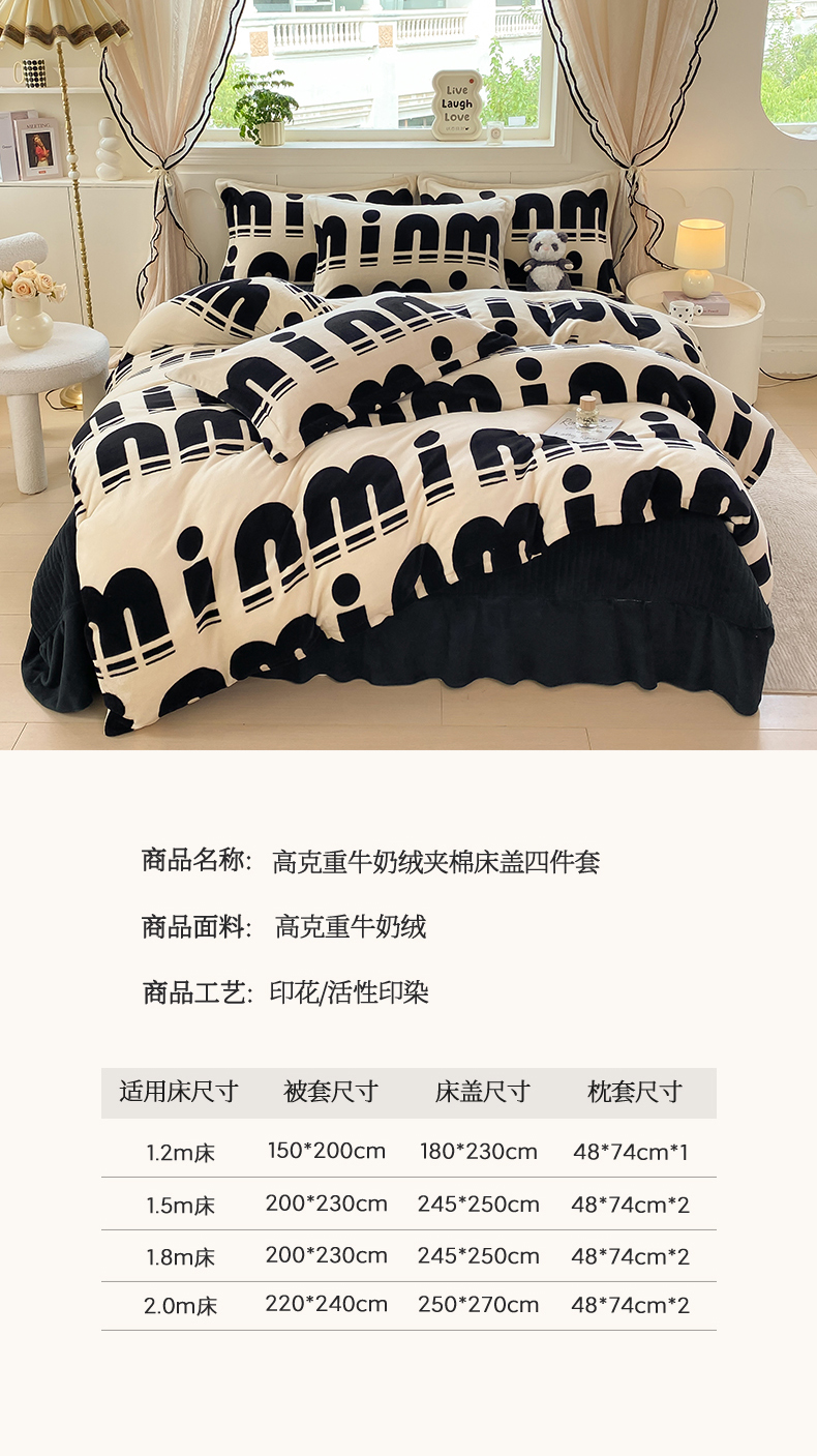 商品名称:豫见家纺 2025新款高克重牛奶绒夹棉床盖四件套 新潮风尚
