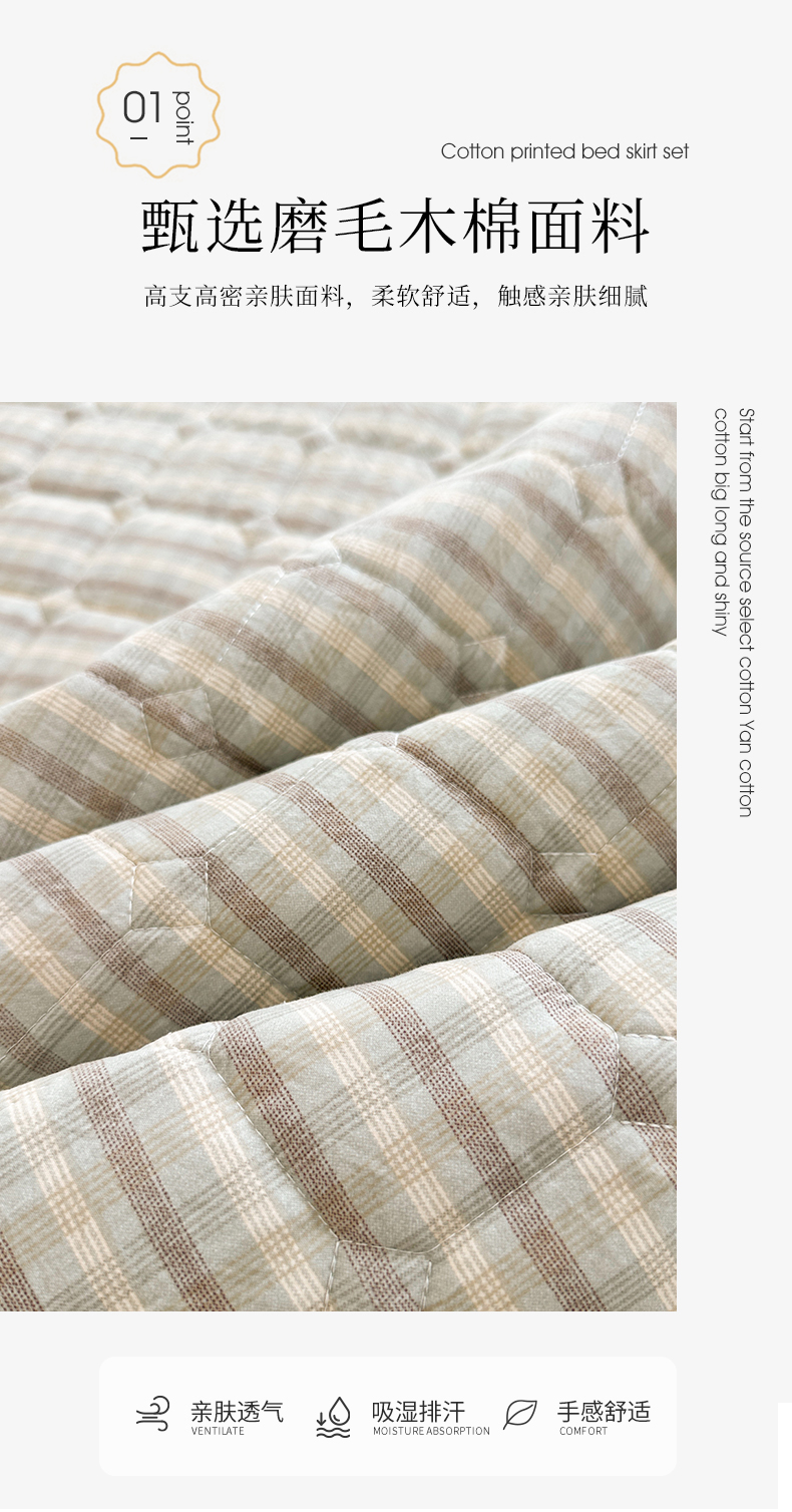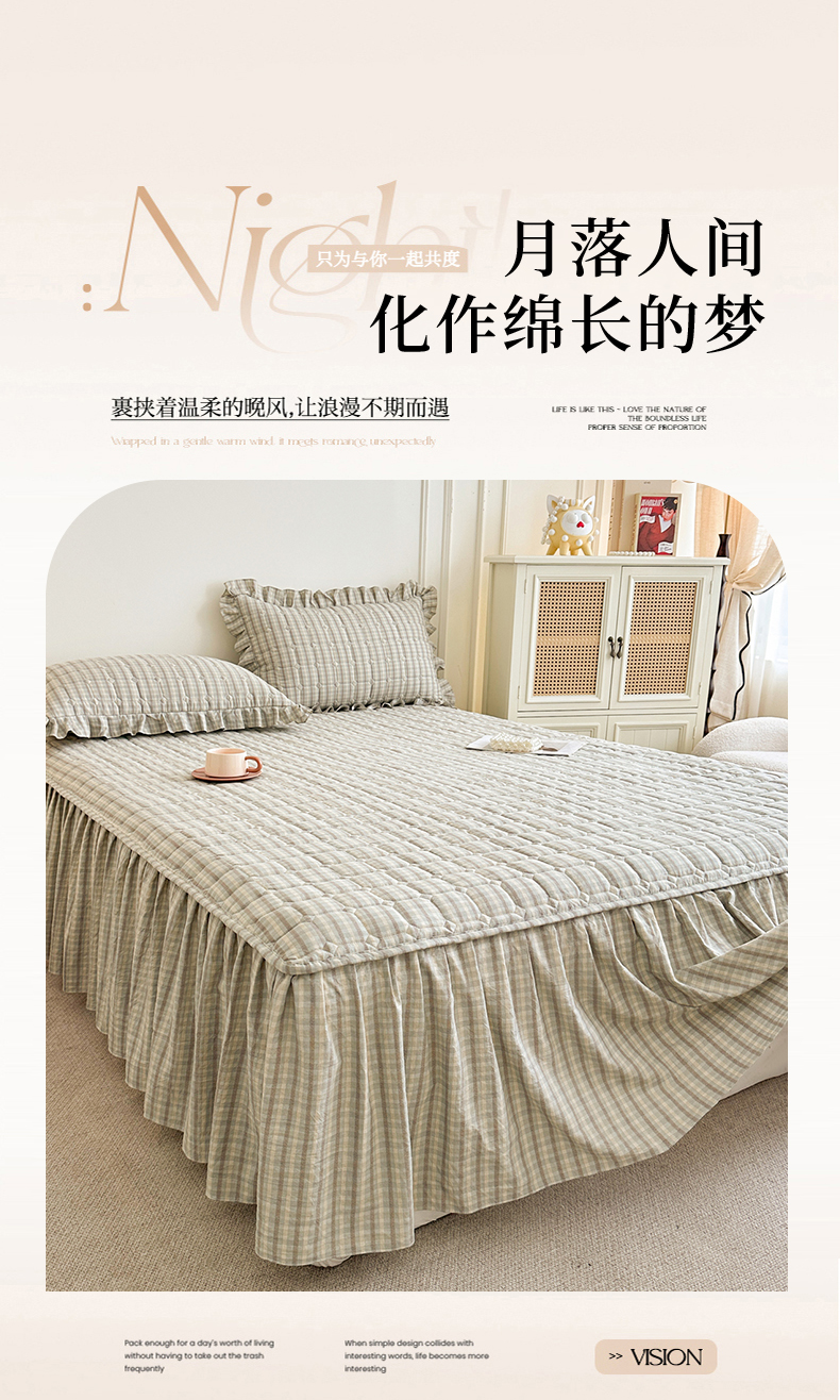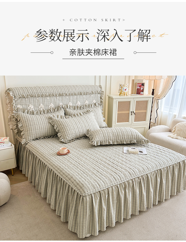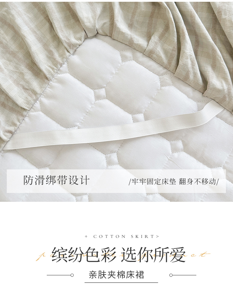 (总)十个点家纺 2025新款加厚磨毛木棉床裙三件套-格小格系列,格小格-粉,格小格-金驼,格小格-咖,格小格-兰,格小格-绿,格小格-玉