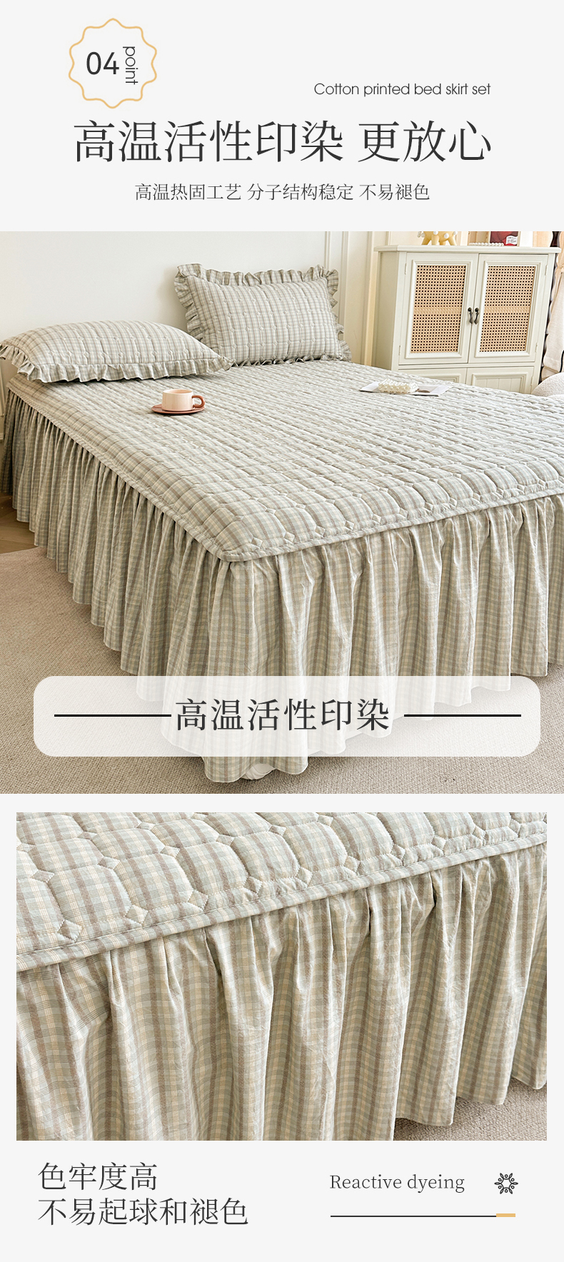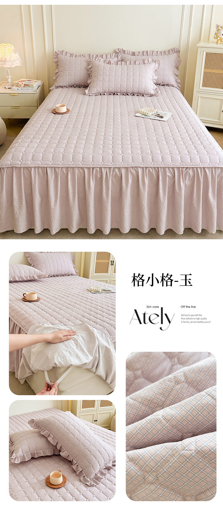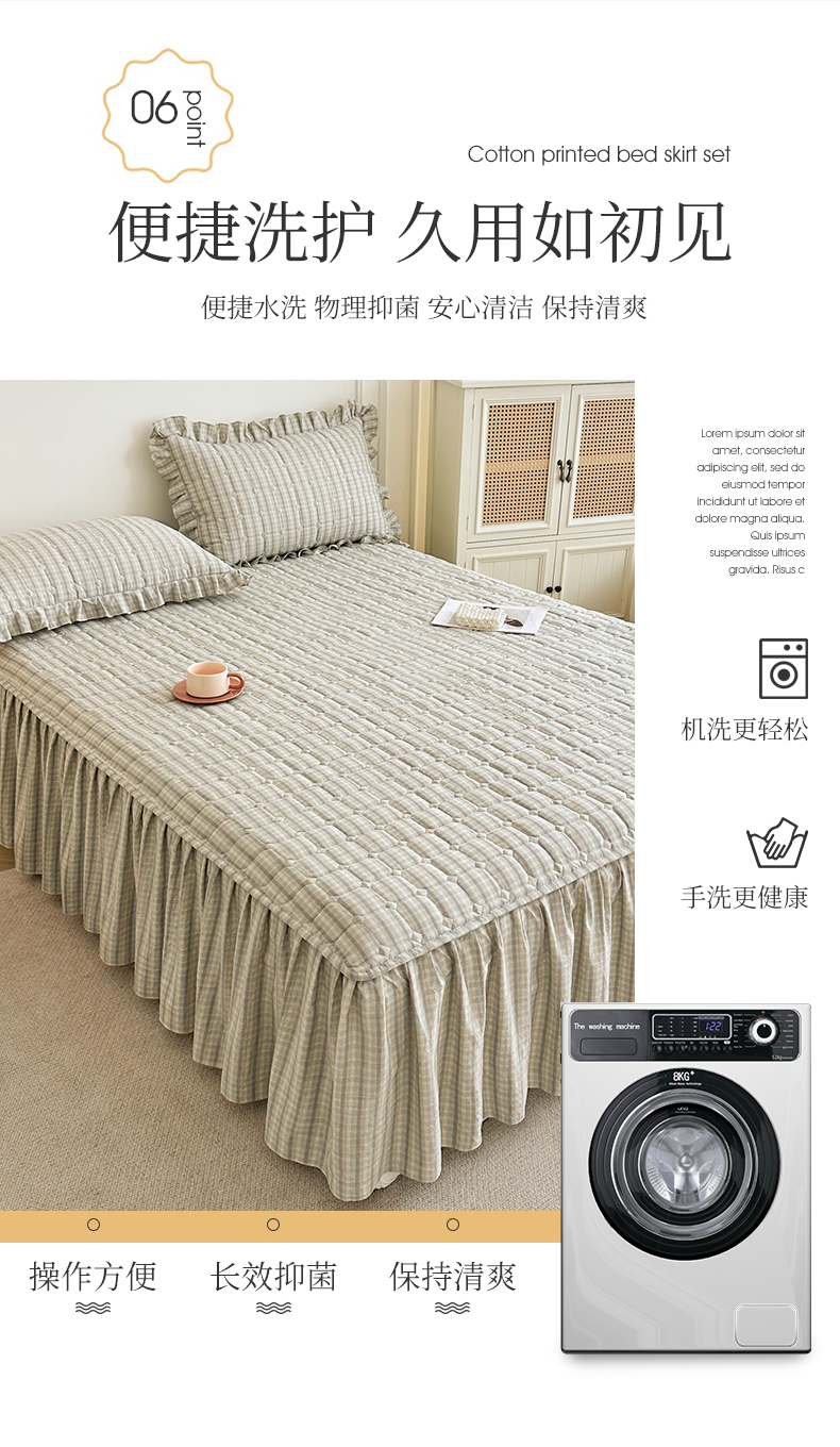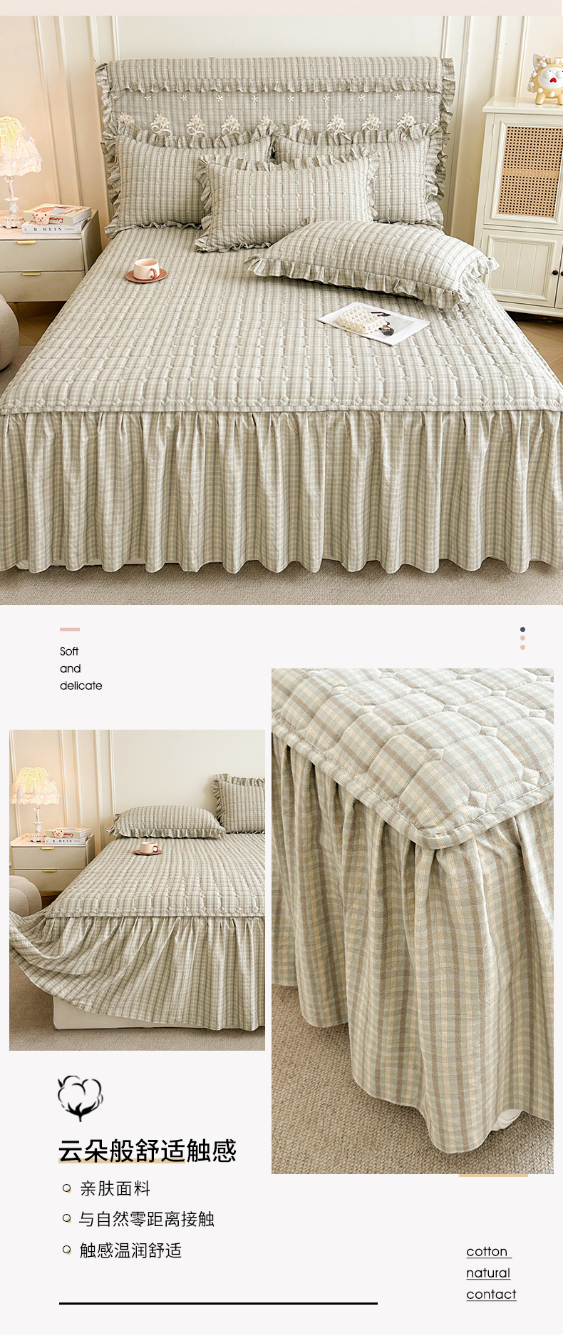 (总)十个点家纺 2025新款加厚磨毛木棉床裙三件套-格小格系列,格小格-粉,格小格-金驼,格小格-咖,格小格-兰,格小格-绿,格小格-玉