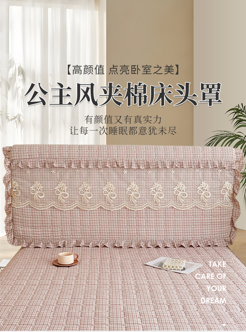 当前位置: 91家纺网 > 商品网购 > 跨境商品 > 床上用品(Bedding) > 床单床罩(Bedspreads Coverlets & Set > 十个点家纺 2025新款公主风夹棉床头罩-格小格系列 格小格-粉