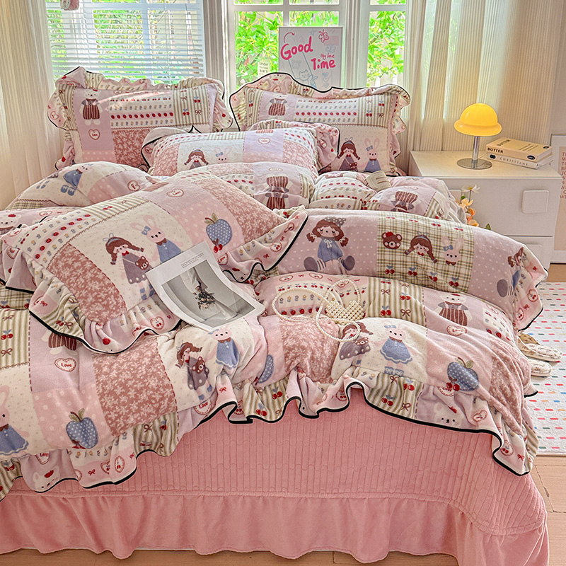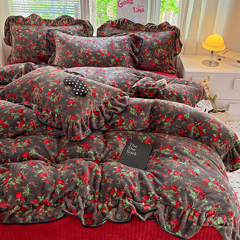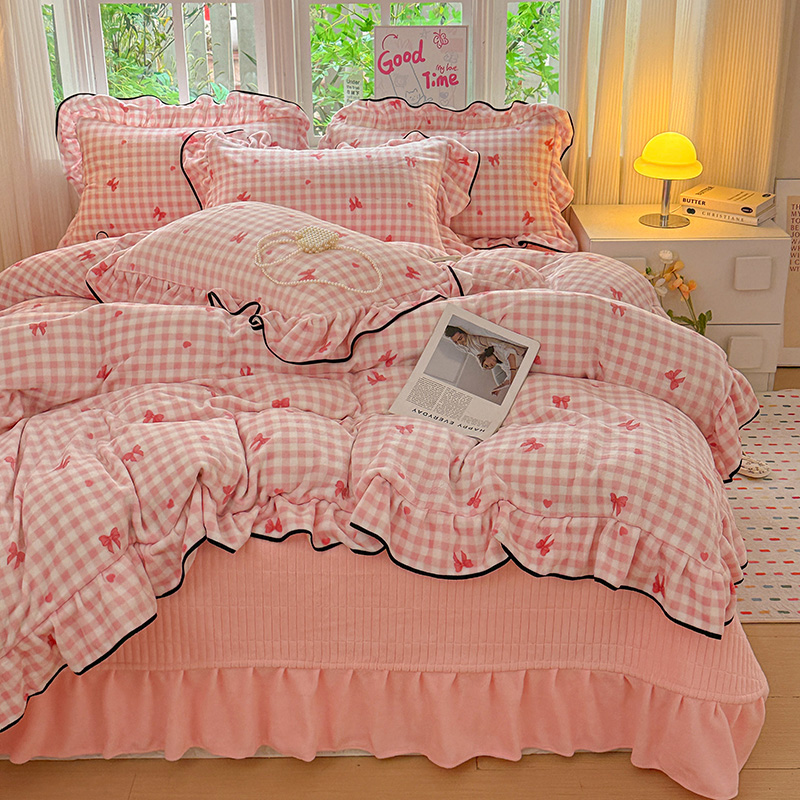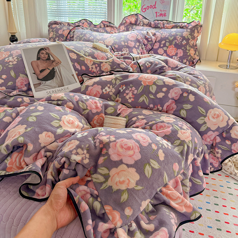 (总)梦莱斯 2025新款加厚保暖双面牛奶绒四件套-黑色花边款,爱丽丝花园,爱心点点,暗香,布偶兔兔,彩虹波点,春不晚,蝶舞,繁花,粉红蝴蝶结,粉色猫,格子爱心咖,格子猫,格子樱桃,黑巧樱桃,黑糖珍珠,蝴蝶结,花里梦,快乐女孩,玫瑰之约 - 白,玫瑰之约 - 黑,米亚,桃之夭夭,心动-灰,心动-紫,紫花萌境