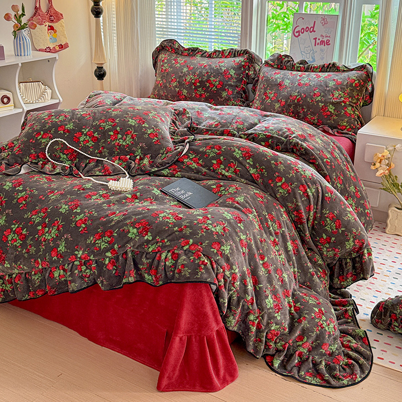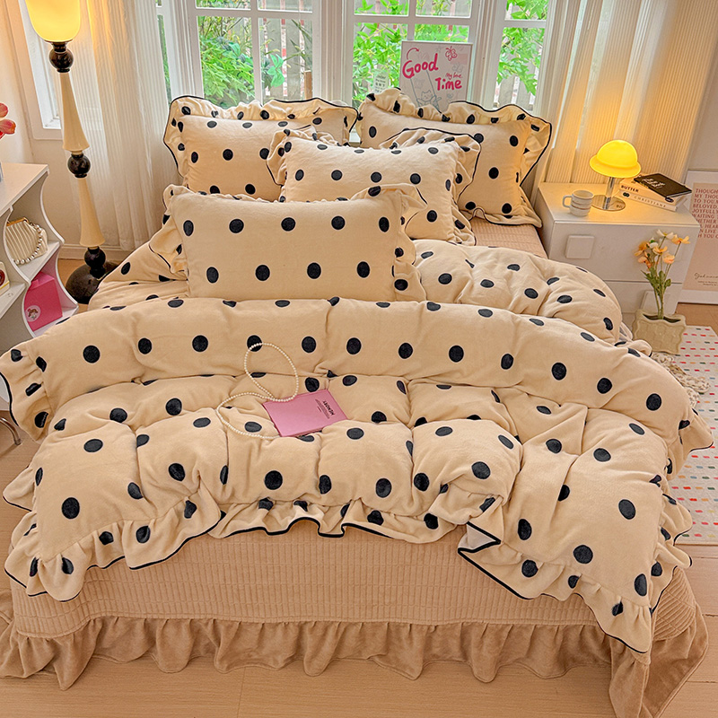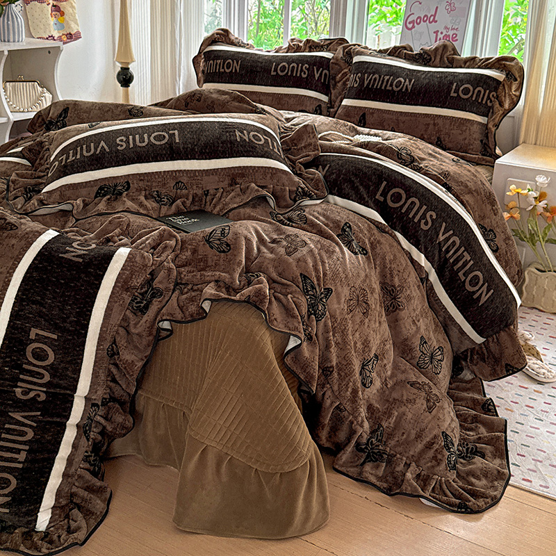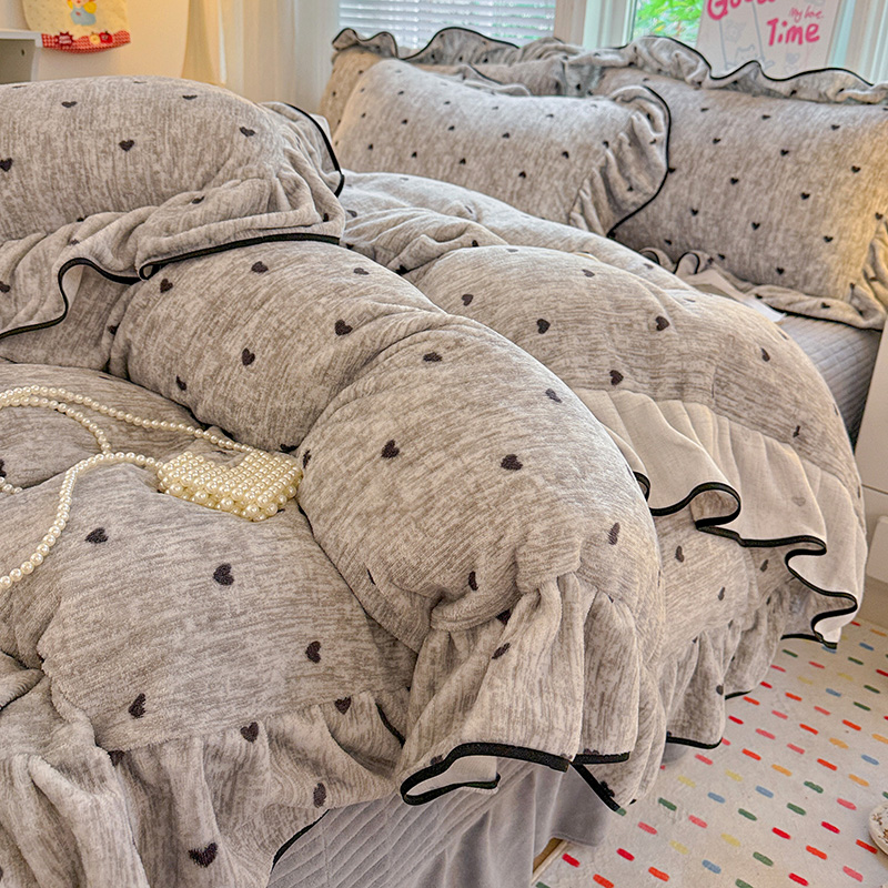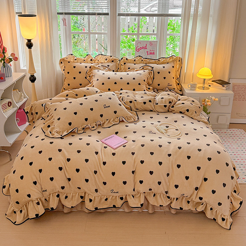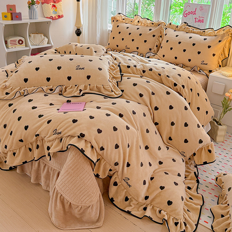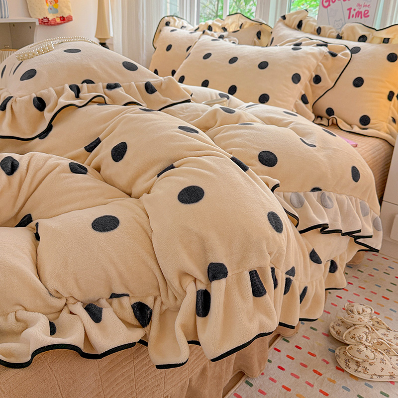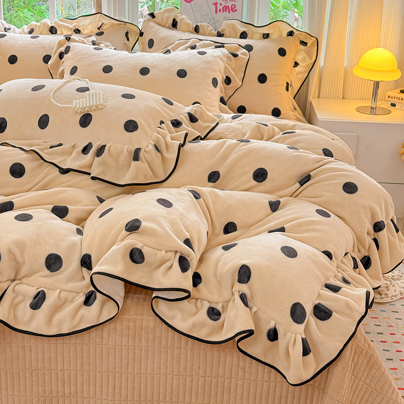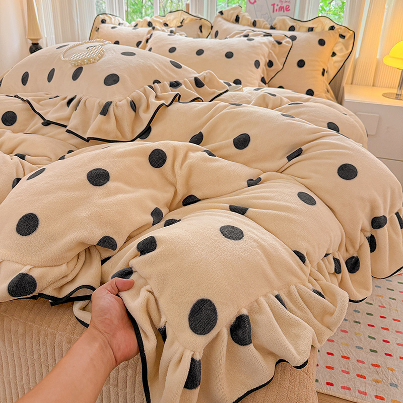 (总)梦莱斯 2025新款加厚保暖双面牛奶绒四件套-黑色花边款
