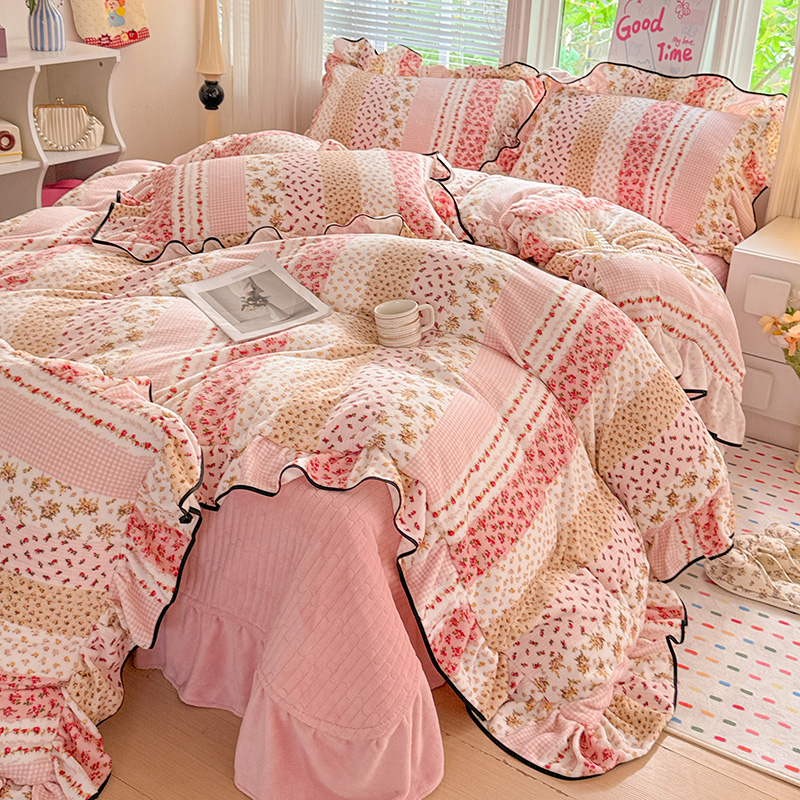 (总)梦莱斯 2025新款田园碎花纯棉花边四件套-床盖款,采薇,花精灵,花开半夏,莱茵,恋爱季,绿叶仙踪,糜花似锦,糜花熙悦,秘境花园
