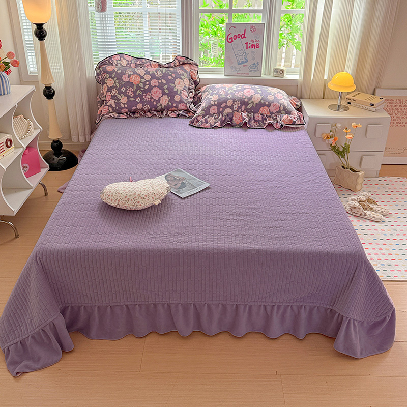 (总)梦莱斯2025新款皱皱棉学生款床盖三件套,波点粉,波点黄,波点咖,波点蓝,波点紫,法式少女,花海绿,简夕米,蓝格子,罗格先生咖,罗格先生蓝,迷你格灰,迷你格米,珊瑚海粉,水墨嫣然,往事黄,往事咖,至尚