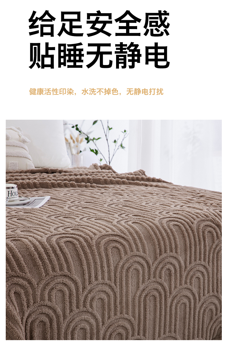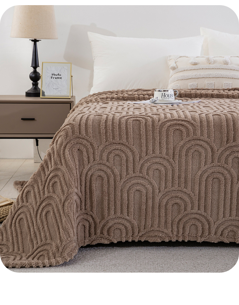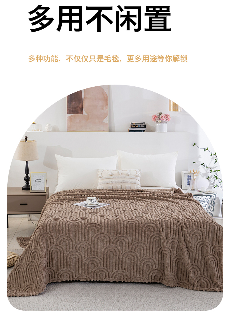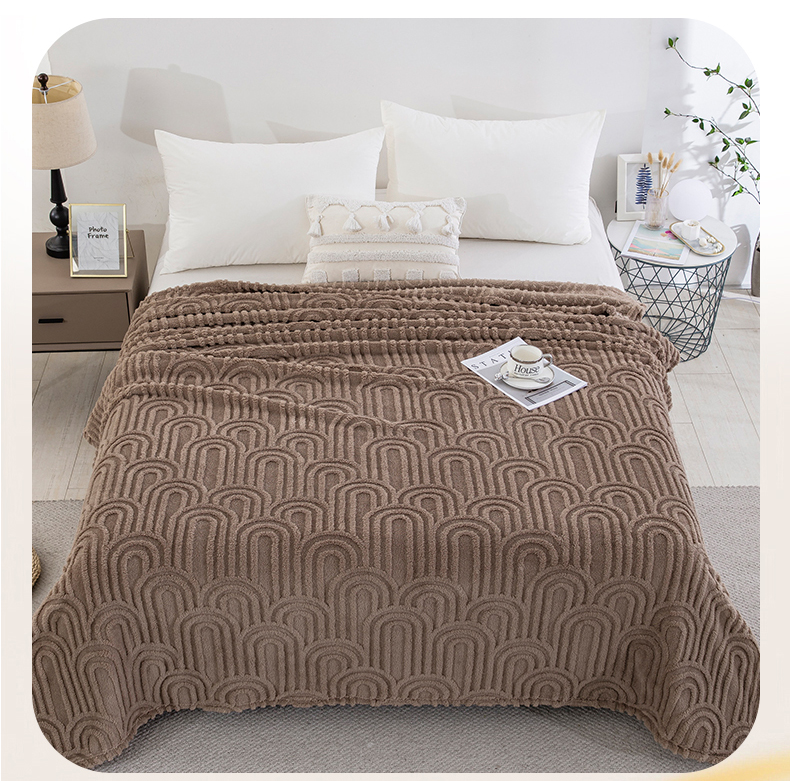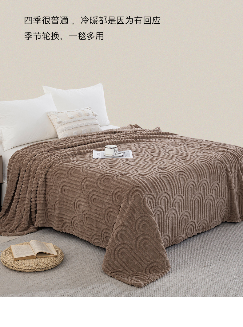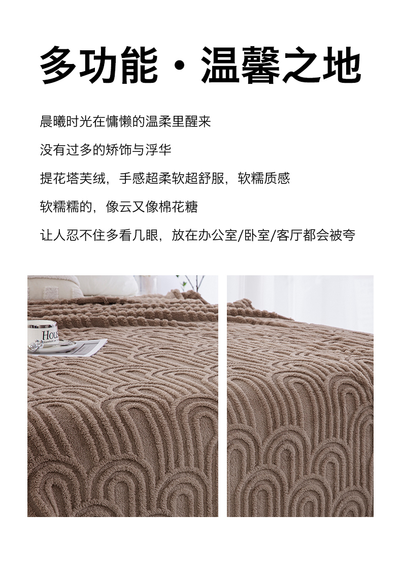 一左一右 2025秋冬新款280克高克重单层双面提花塔芙绒毛毯舒棉绒毯多功能毯子外贸跨境电商-小拱门 咖色