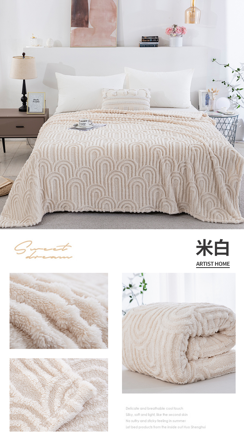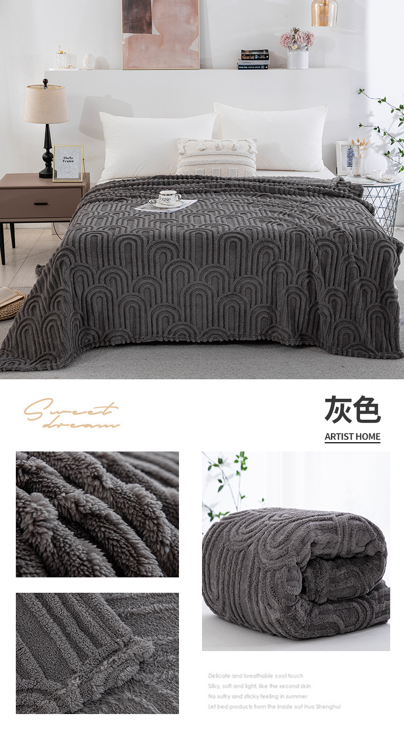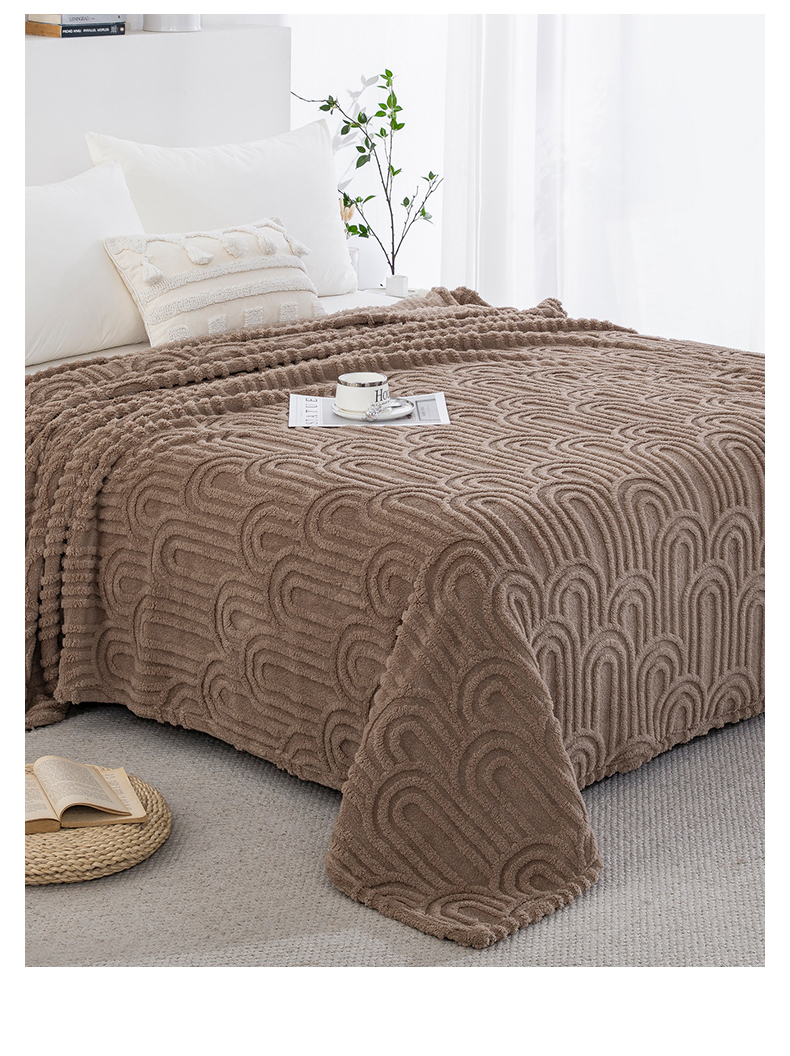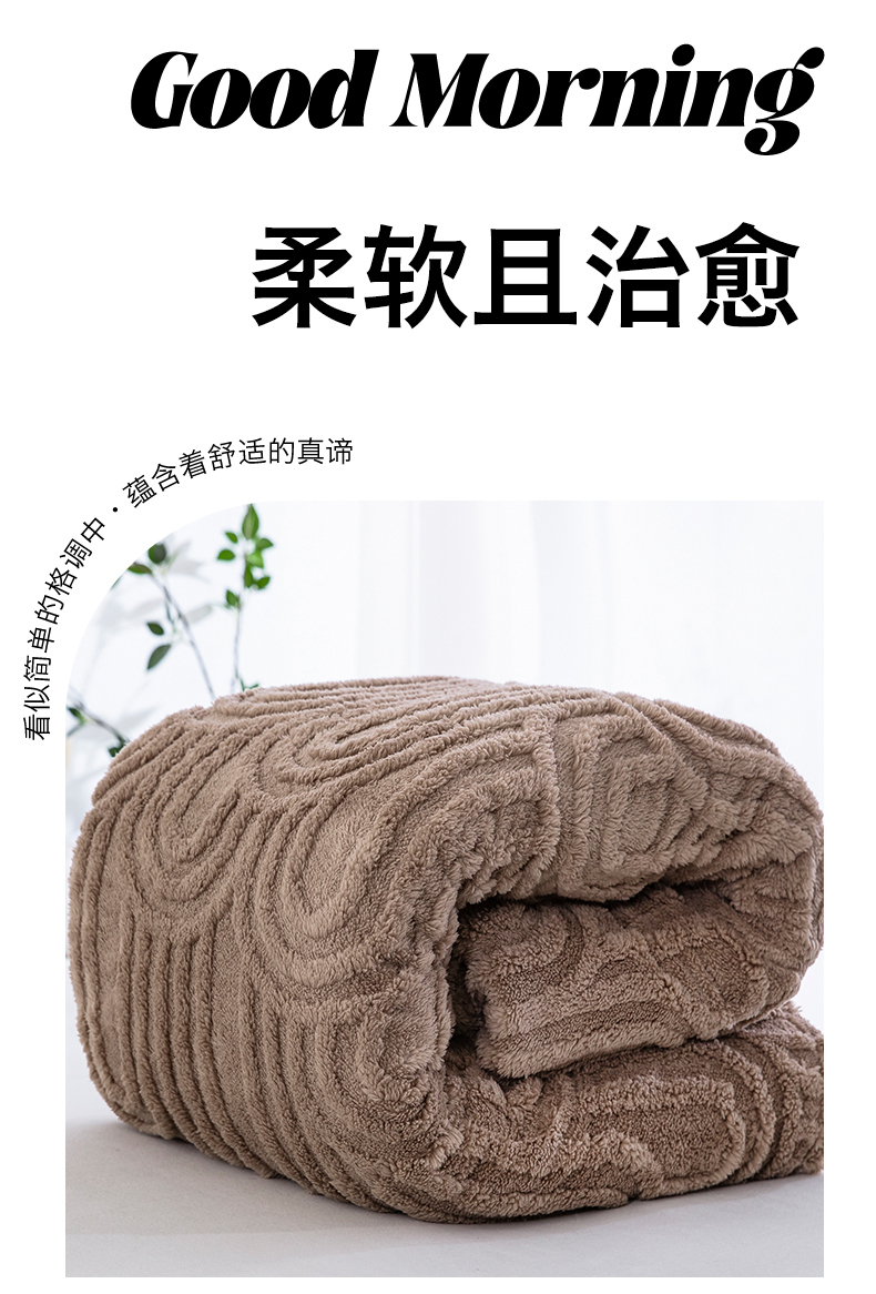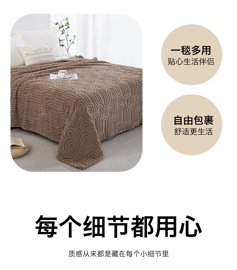 一左一右 2025秋冬新款280克高克重单层双面提花塔芙绒毛毯舒棉绒毯多功能毯子外贸跨境电商-小拱门 咖色