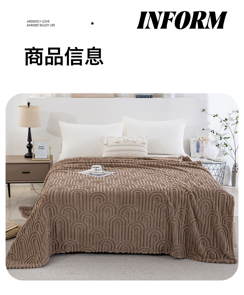 商品名称:一左一右 2025秋冬新款280克高克重单层双面提花塔芙绒毛毯舒棉绒毯多功能毯子外贸跨境电商-小拱门 咖色