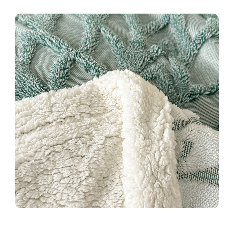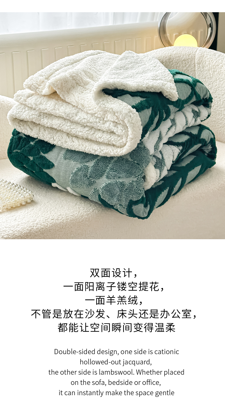 丹本家纺 2025新款阳离子提花镂空色织多功能盖毯塔芙绒羊羔绒毛毯毯子 绽放-墨绿