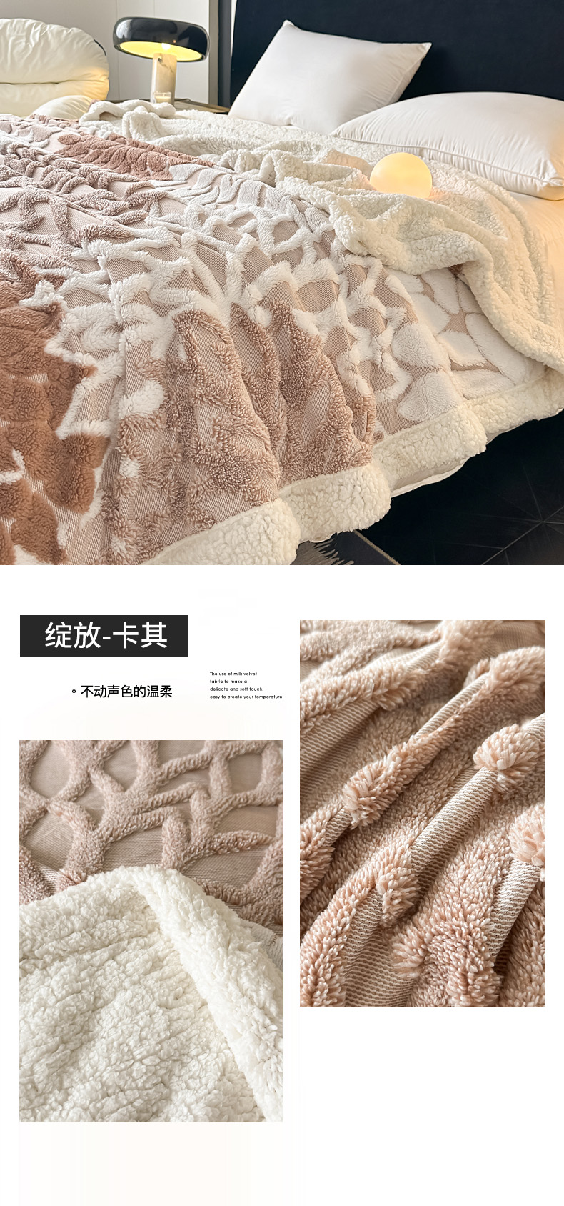 (总)丹本家纺 2025新款阳离子提花镂空色织多功能盖毯塔芙绒羊羔绒毛毯毯子,绽放-豆沙,绽放-卡其,绽放-墨绿,绽放-浅灰,绽放-浅绿,绽放-深灰,绽放-雾蓝,绽放-紫红