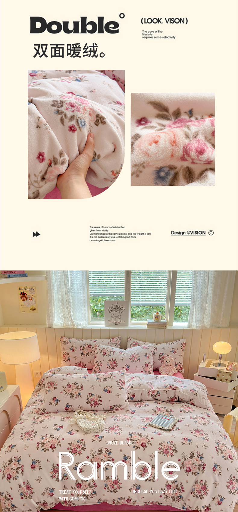 • 91家纺网 家纺一手货源 找家纺 丽美人家纺 (全尺寸不缺货)2025新款双面高克重牛奶绒被套单件被罩 山茶花语-粉