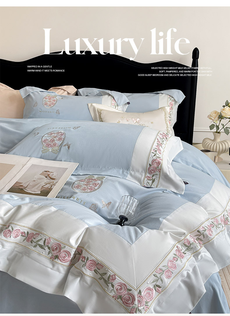 当前位置: 91家纺网 > 商品网购 > 床品套件 > 四件套 > 长绒棉四件套 > 冬季爆款A类长绒棉加厚磨毛全棉纯棉保暖高端重工刺绣全工艺被套床单轻奢床上用品 花巷-飘蓝