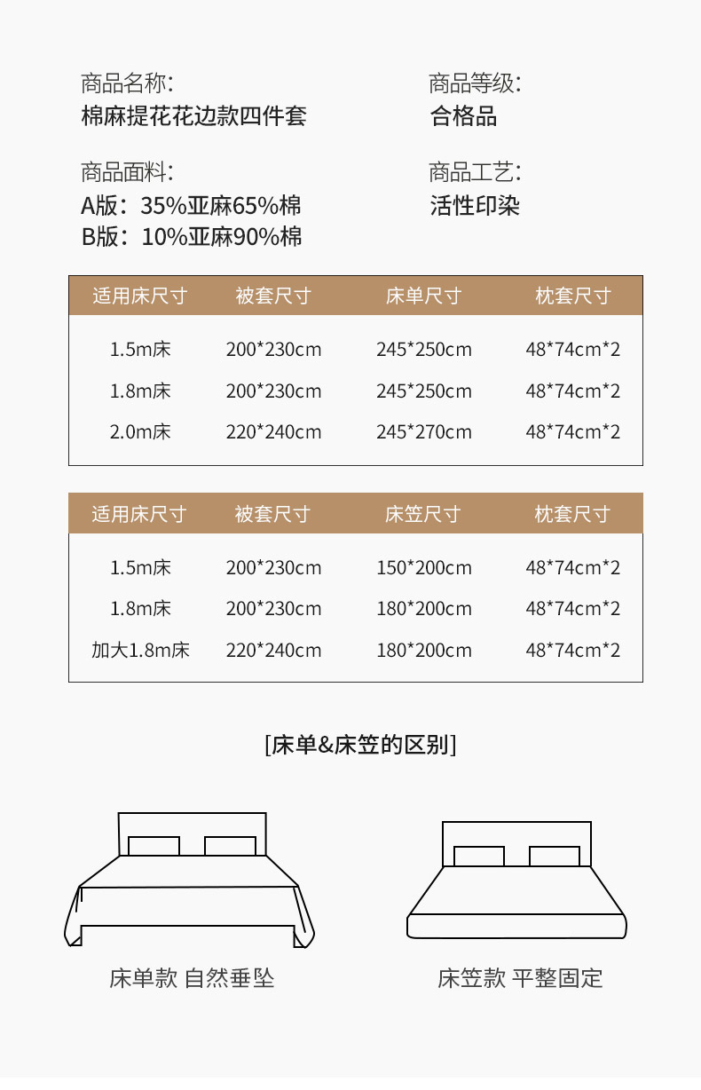 商品名称:(总)法式提花棉麻四件套纯棉全棉复古风花边素色亚麻高端超柔透气高档床上用品
