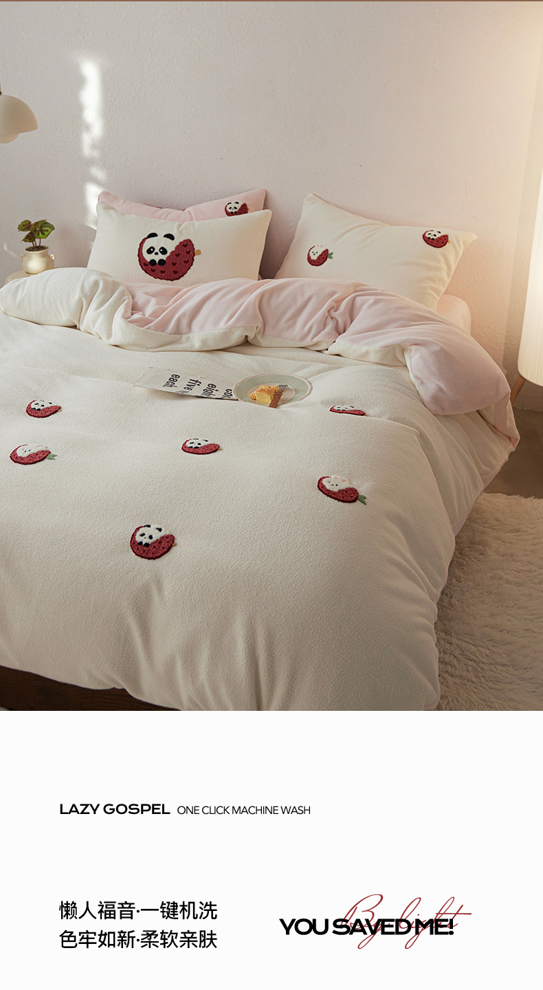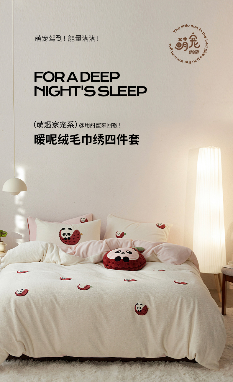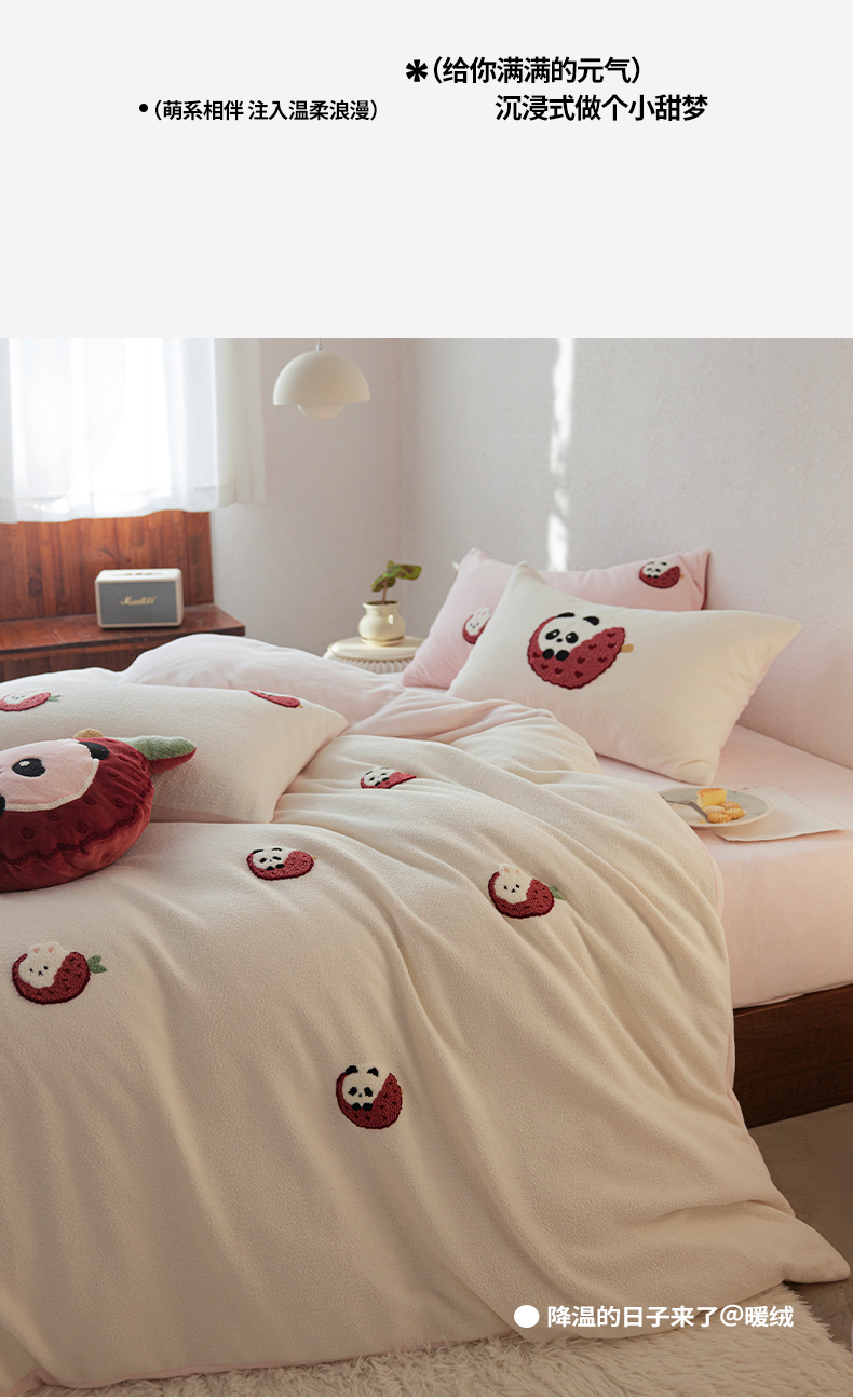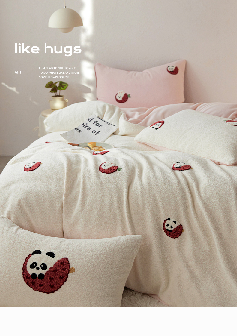 当前位置: 91家纺网 > 商品网购 > 床品套件 > 四件套 > 其它四件套 > 安莱生活 2025新款暖呢绒毛巾绣四件套(萌趣家宠系)-风格1 荔枝熊猫-粉