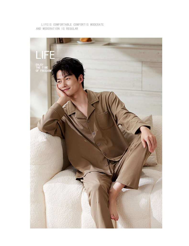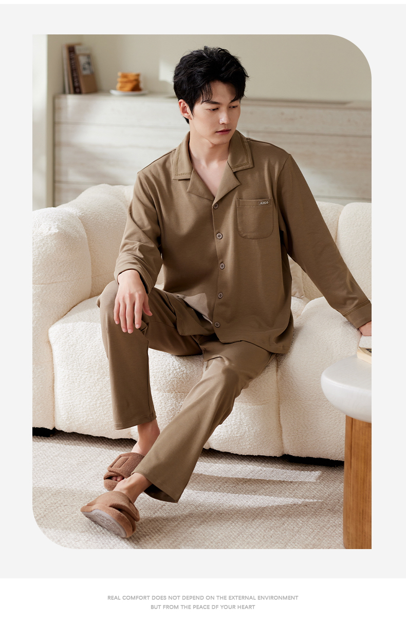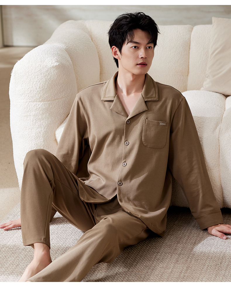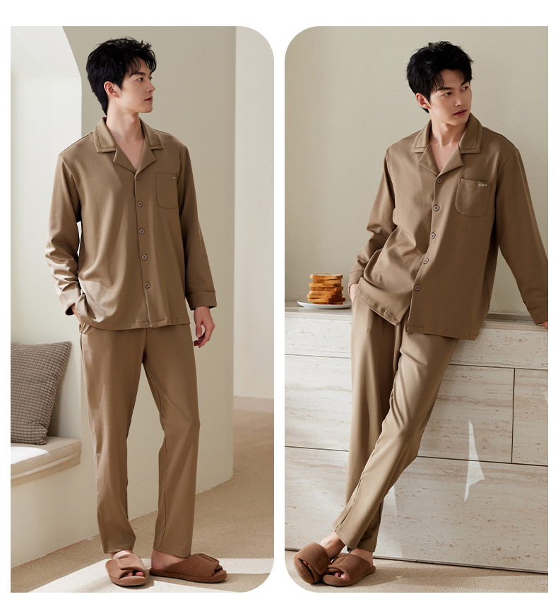 商品名称:洛兰沙家居馆 2025保暖睡衣男士冬季新款长袖长裤开衫翻领男款时尚家居服套 54133