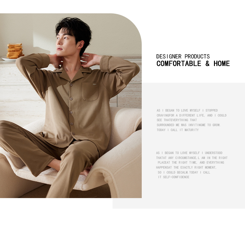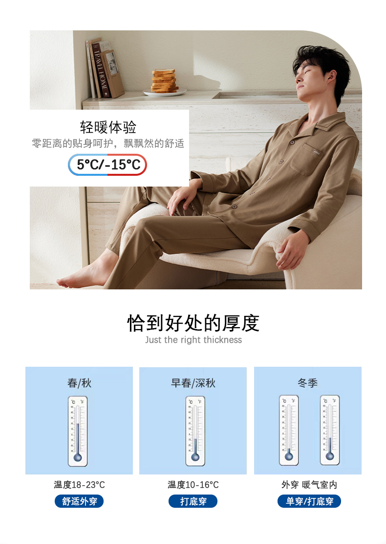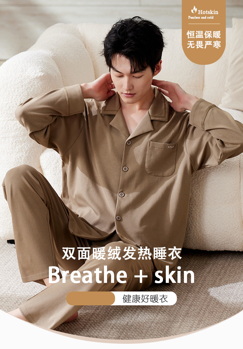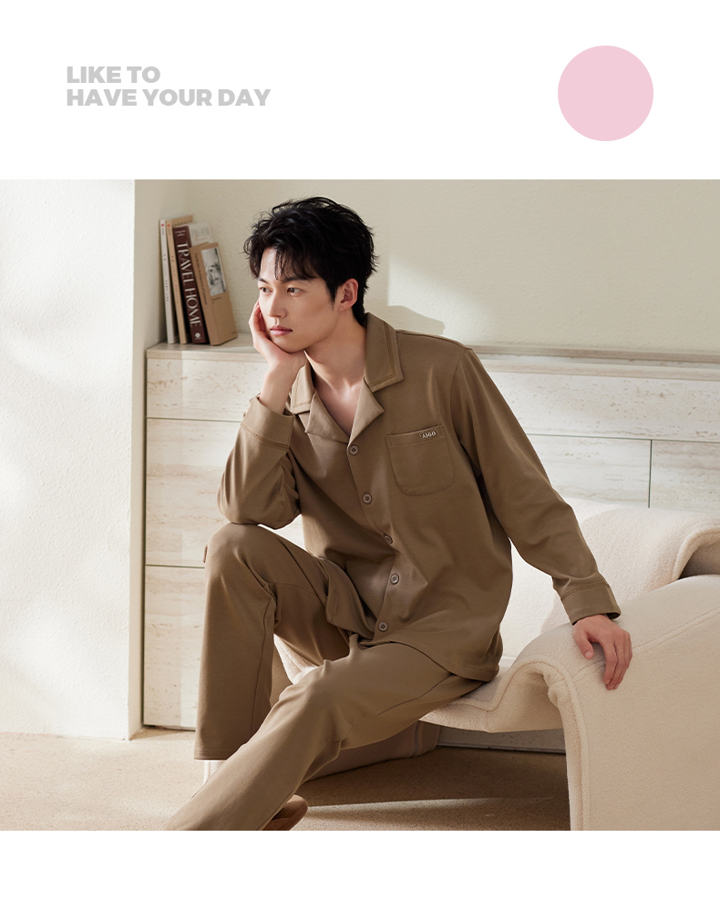 商品名称:洛兰沙家居馆 2025保暖睡衣男士冬季新款长袖长裤开衫翻领男款时尚家居服套 54133