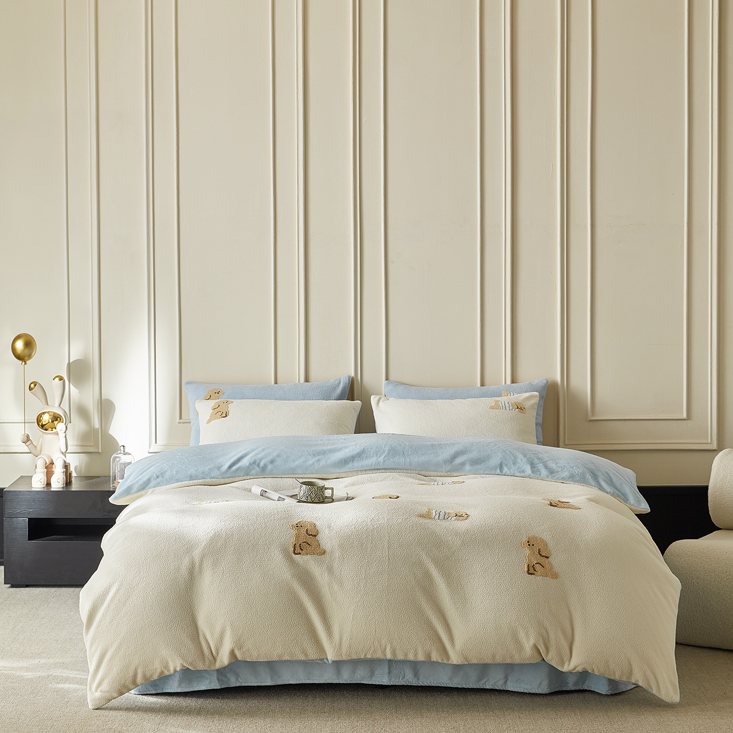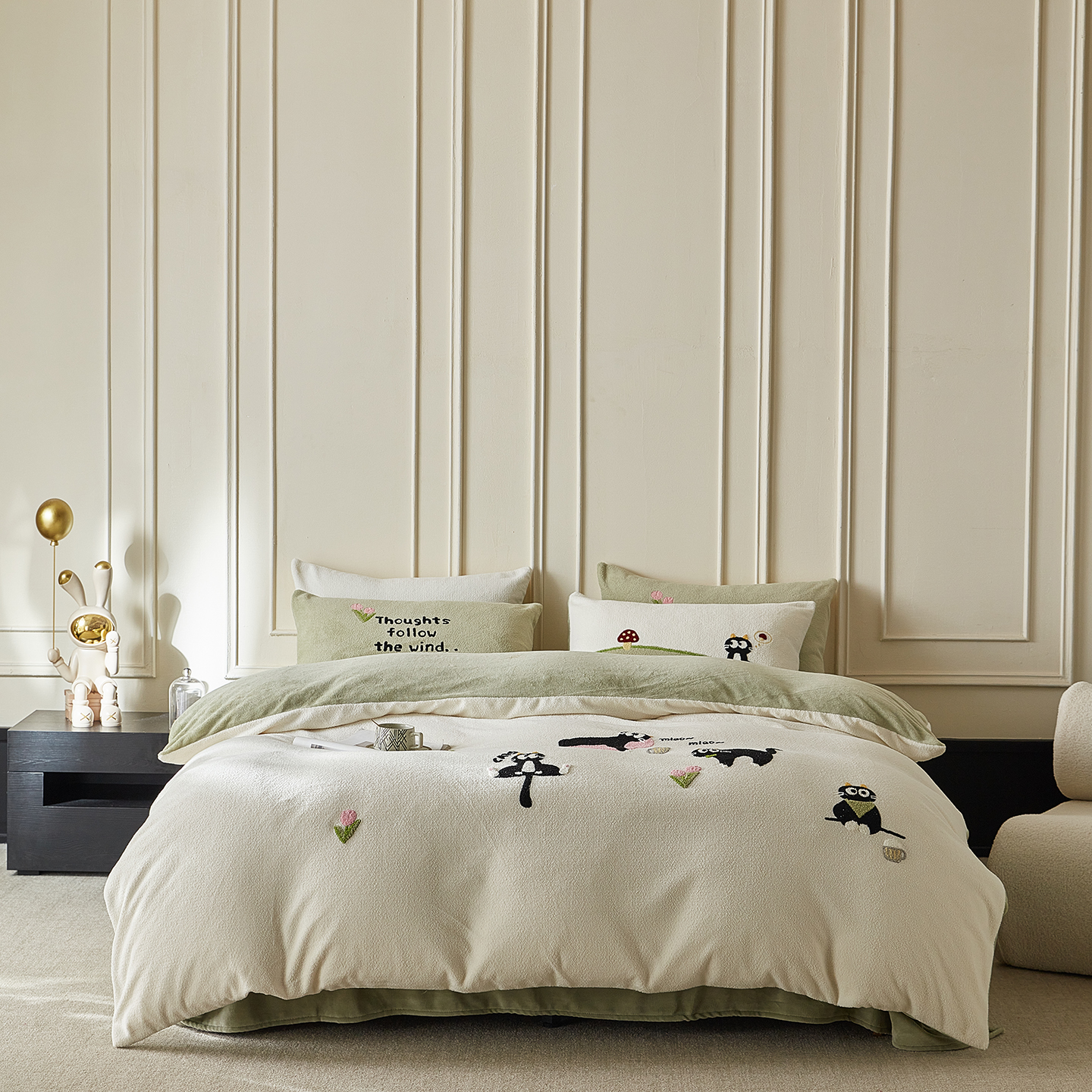 当前位置: 91家纺网 > 商品网购 > 床品套件 > 四件套 > 其它四件套 > 安莱生活 2025新款暖呢绒毛巾绣四件套(萌趣家宠系)-风格3 炸毛小黑猫-灰绿