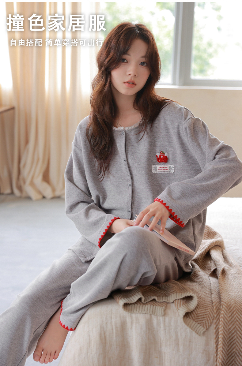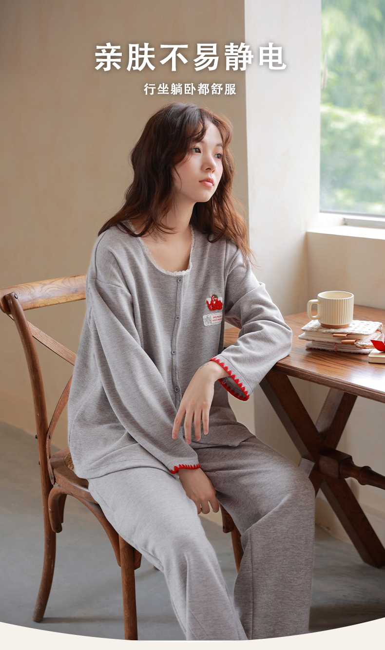 商品名称:洛兰沙家居馆 2025新款睡衣女长袖新款春秋双层羊绒德绒可外穿卡通开衫家居服套装韩版秋冬 42315