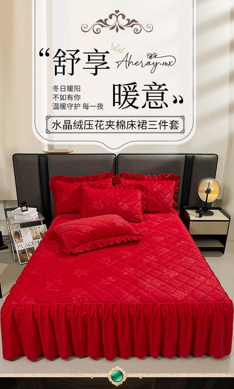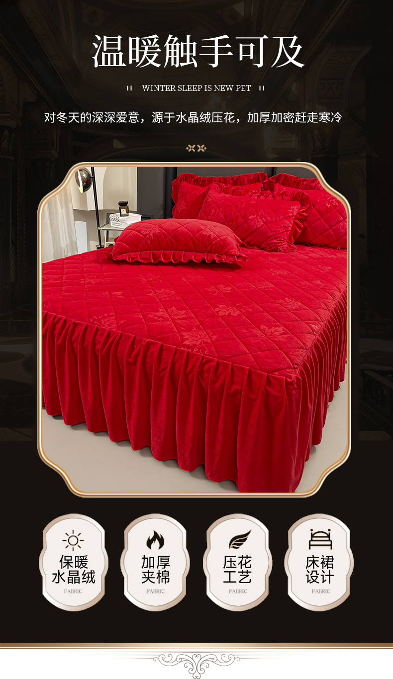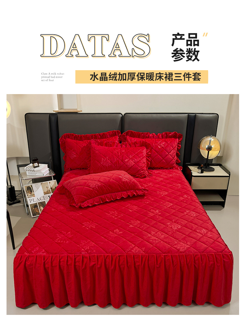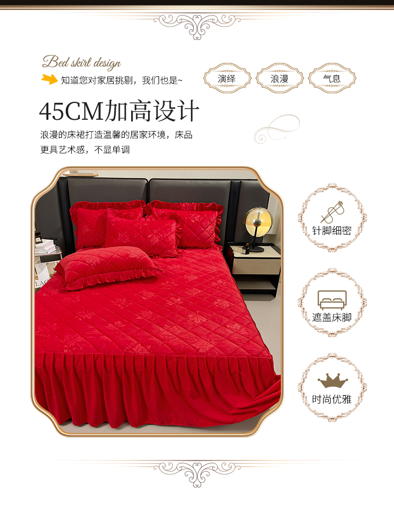当前位置: 91家纺网 > 商品网购 > 床品套件 > 三件套 > 屹成家纺 2025新款压花水晶绒床裙三件套 (床裙单件不低于95元起) 大红