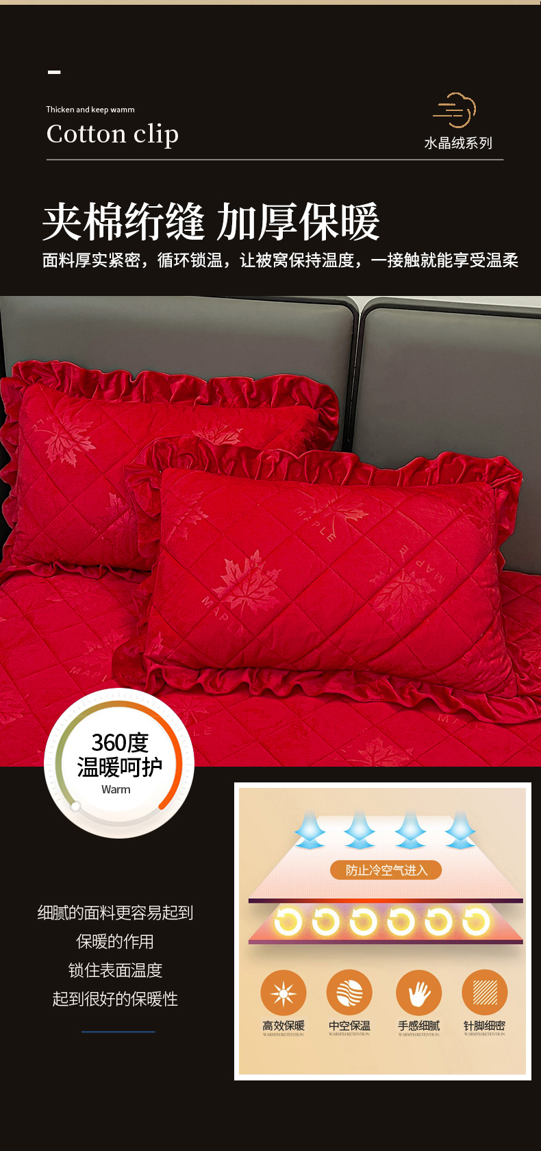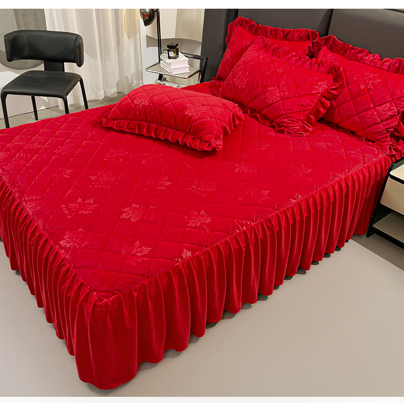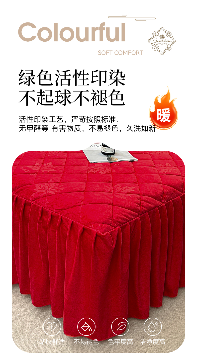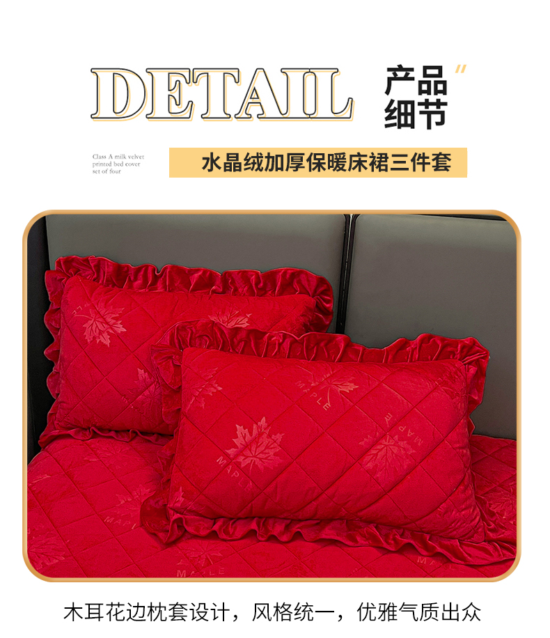 当前位置: 91家纺网 > 商品网购 > 床品套件 > 三件套 > 屹成家纺 2025新款压花水晶绒床裙三件套 (床裙单件不低于95元起) 大红