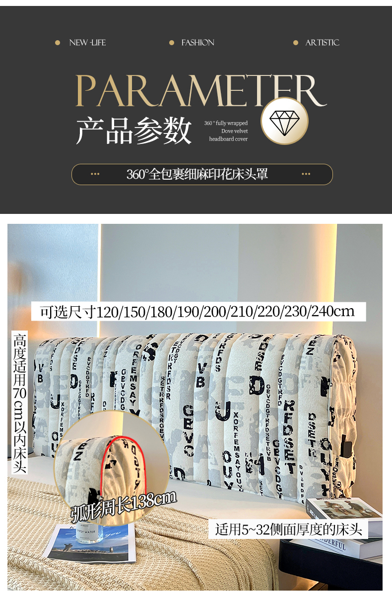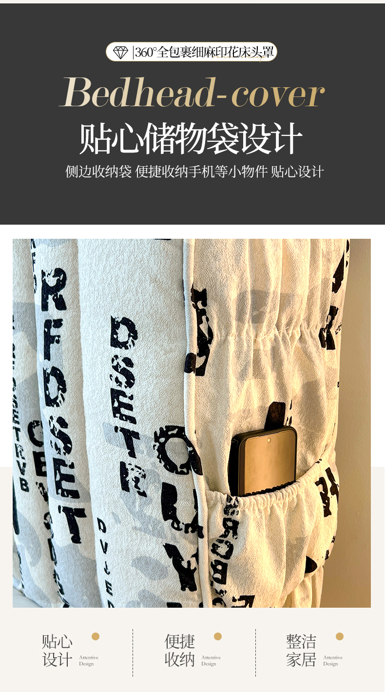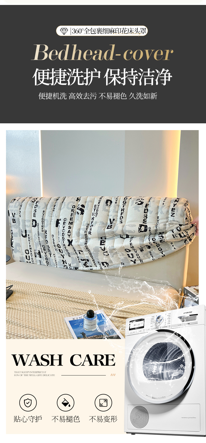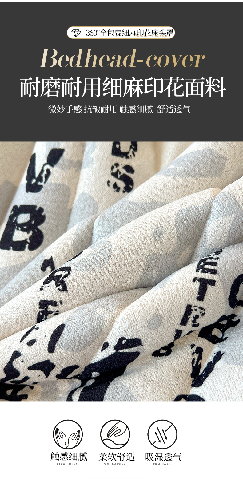 • 91家纺网 家纺一手货源 找家纺 情恒家纺 2025新款细麻印花加厚双面全包床头罩 星黑