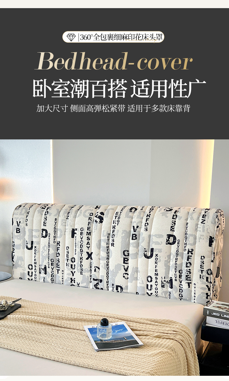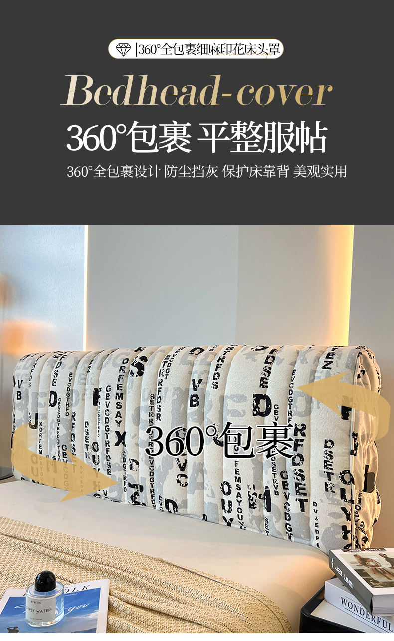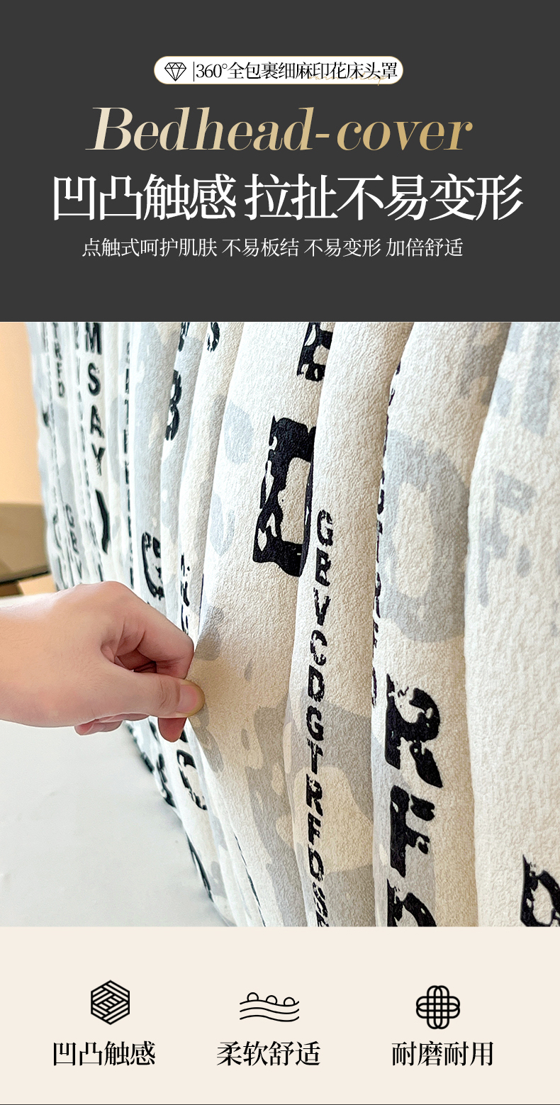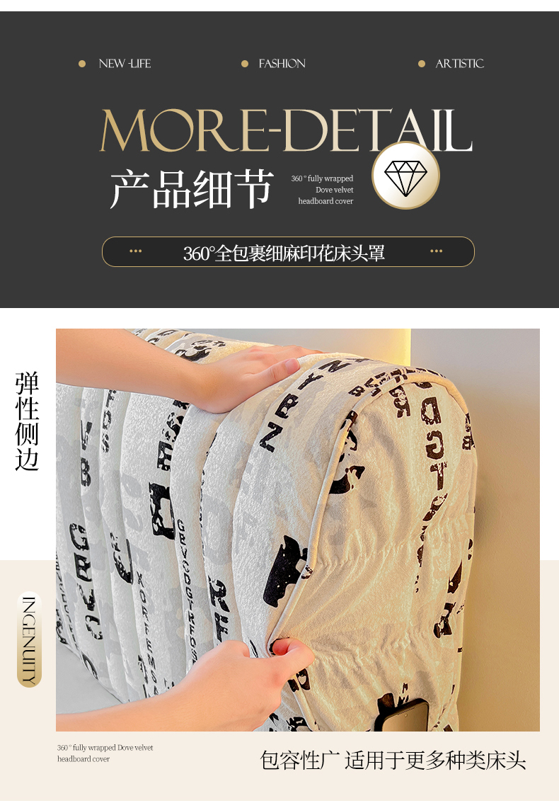 • 91家纺网 家纺一手货源 找家纺 情恒家纺 2025新款细麻印花加厚双面全包床头罩 星黑