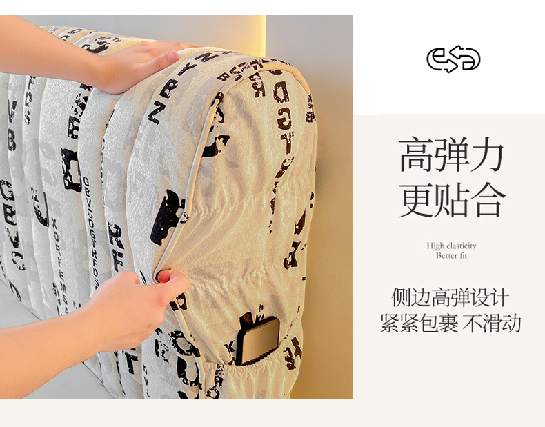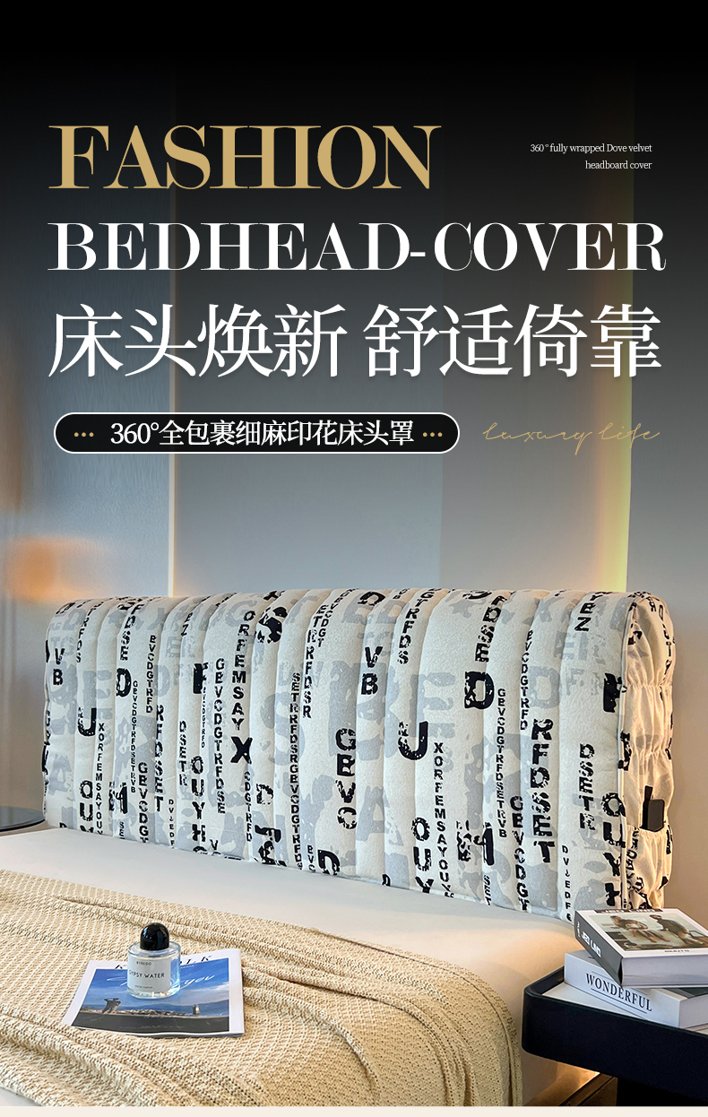 情恒家纺 2025新款细麻印花加厚双面全包床头罩 星黑