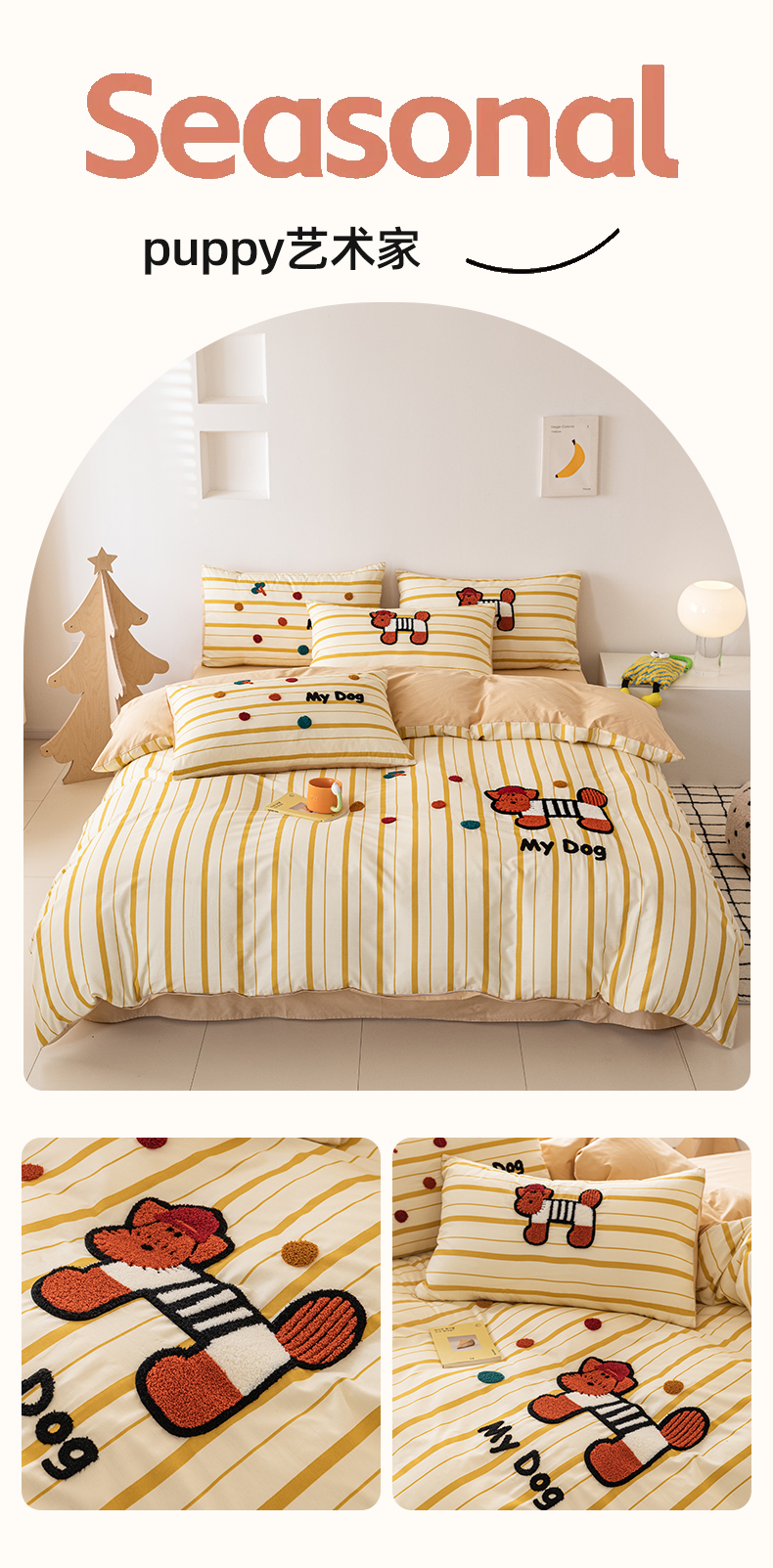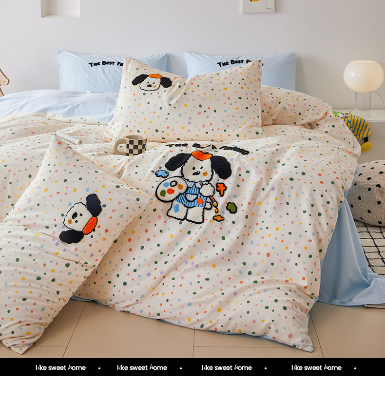 (总)锦觅 2025新款时尚条纹小清新卡通学生季系列印花绣花全棉纯棉四件套,小画家,puppy艺术家,丛林梦想,你好小熊,所象披靡,摇钱树,有钱花