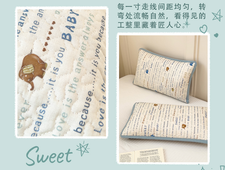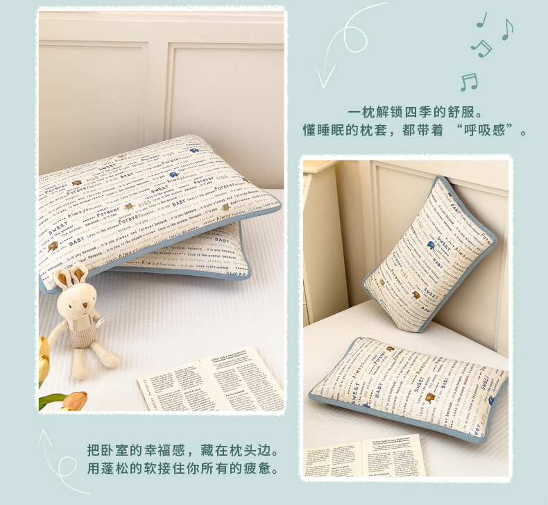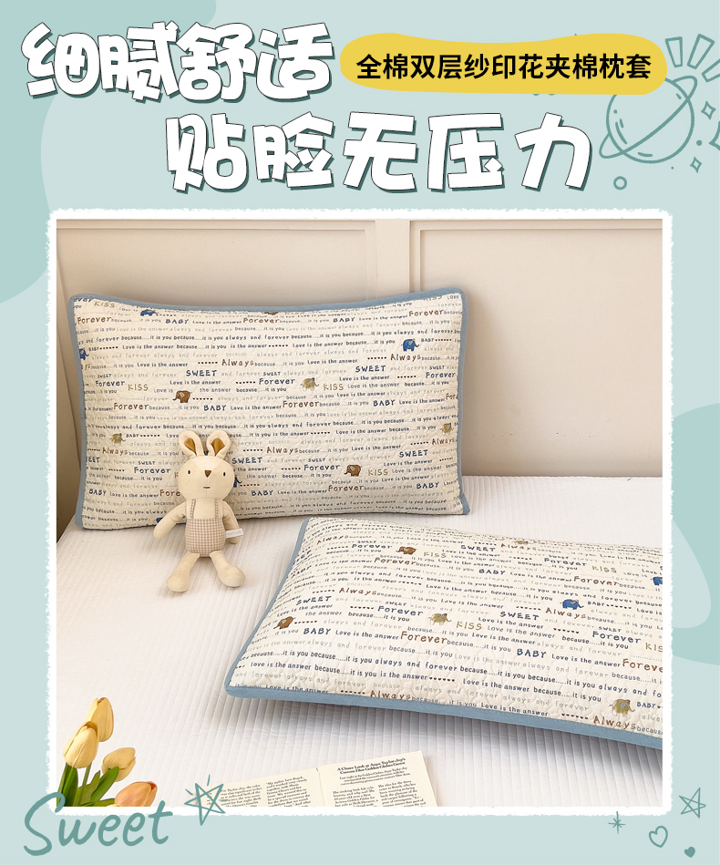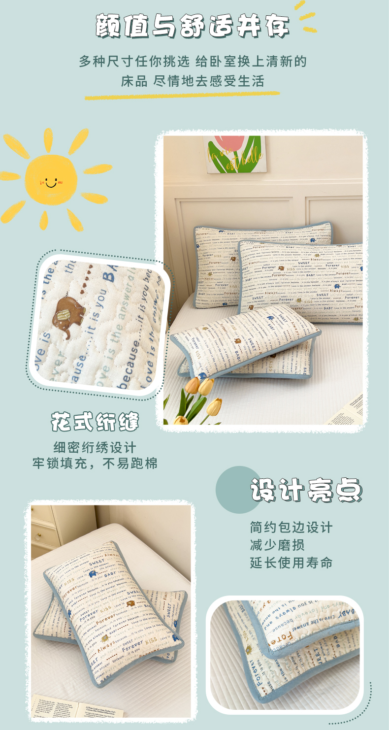 当前位置: 91家纺网 > 商品网购 > 床上用品 > 枕套 > 拾小柒 2025年新款全棉双层纱枕套夹棉隔脏污防口水头油枕头套 英文象蓝