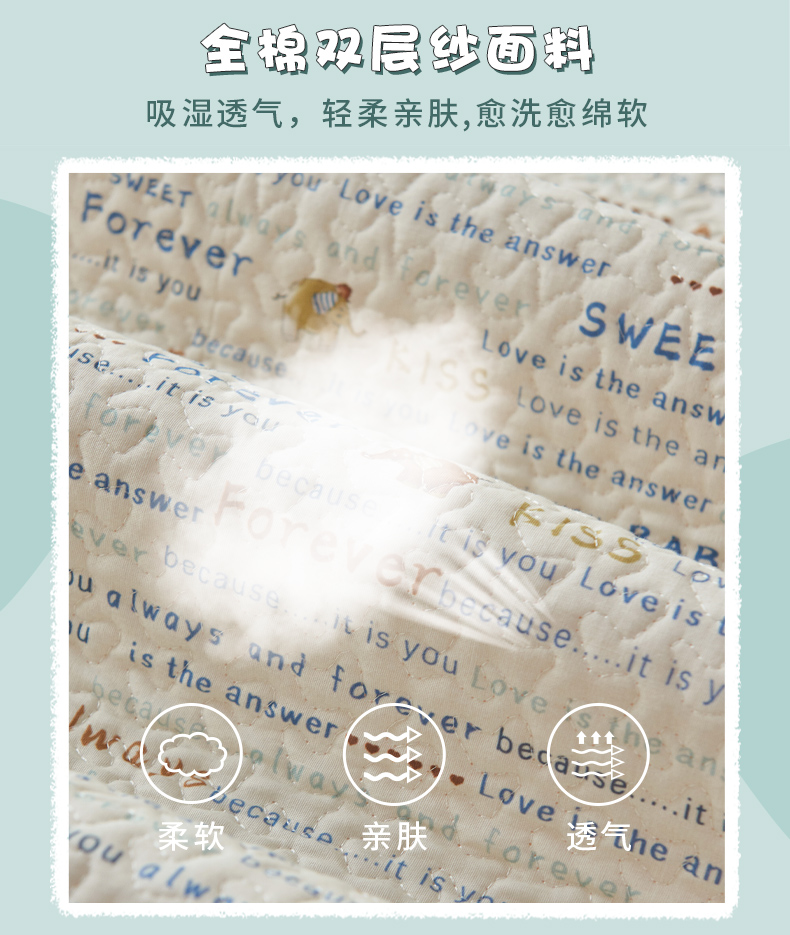 (总)拾小柒 2026年新款全棉双层纱床护垫纯棉防滑床盖床褥子软床垫,豆豆好朋友,咕噜派米,鲤安,萌趣森林粉,萌趣森林蓝