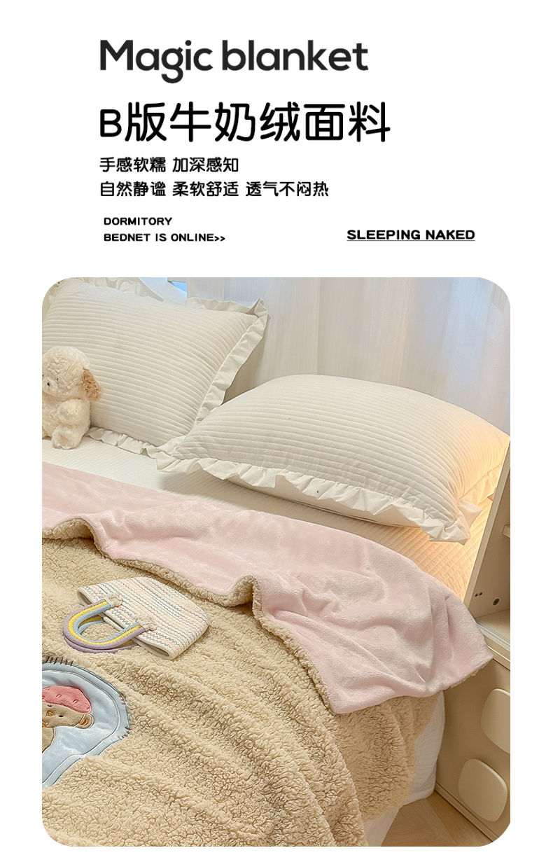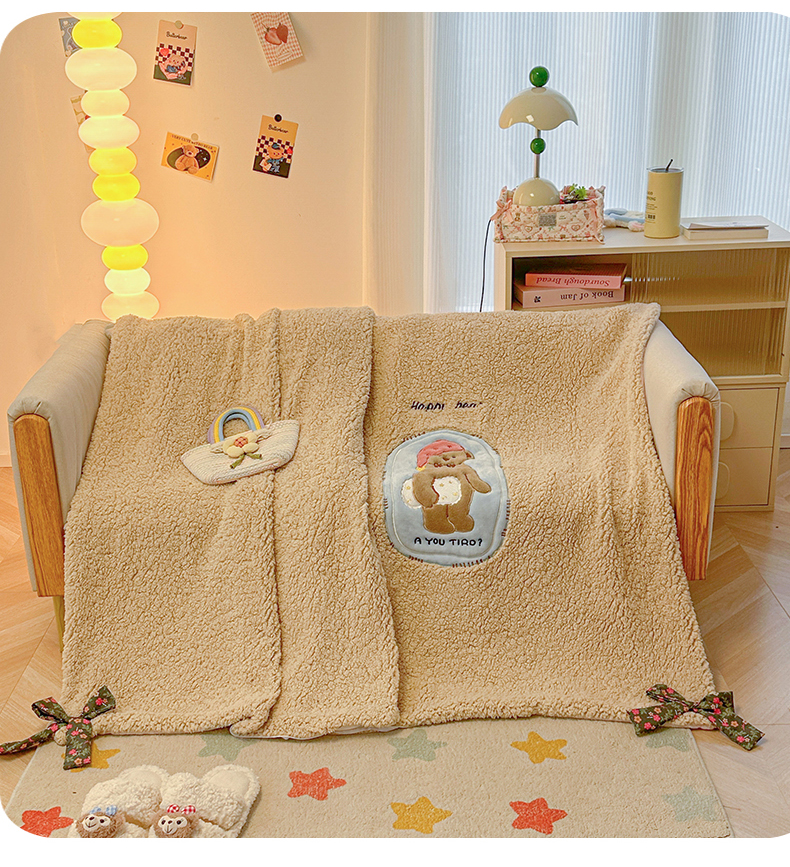 商品名称:子钦家纺 2025新款羊羔绒牛奶绒卡通贴布绣多功能盖毯单被套(第二波) 晚安熊-咖