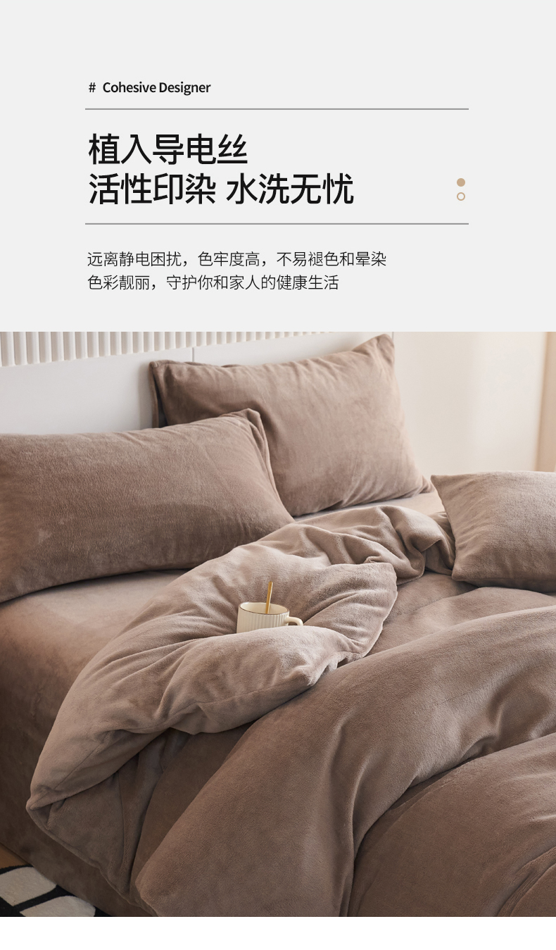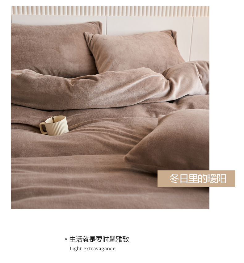 当前位置: 91家纺网 > 商品网购 > 床品套件 > 四件套 > 牛奶绒四件套 > 乐居家纺 2025新款200克重纯色单面绒牛奶绒四件套 摩卡棕