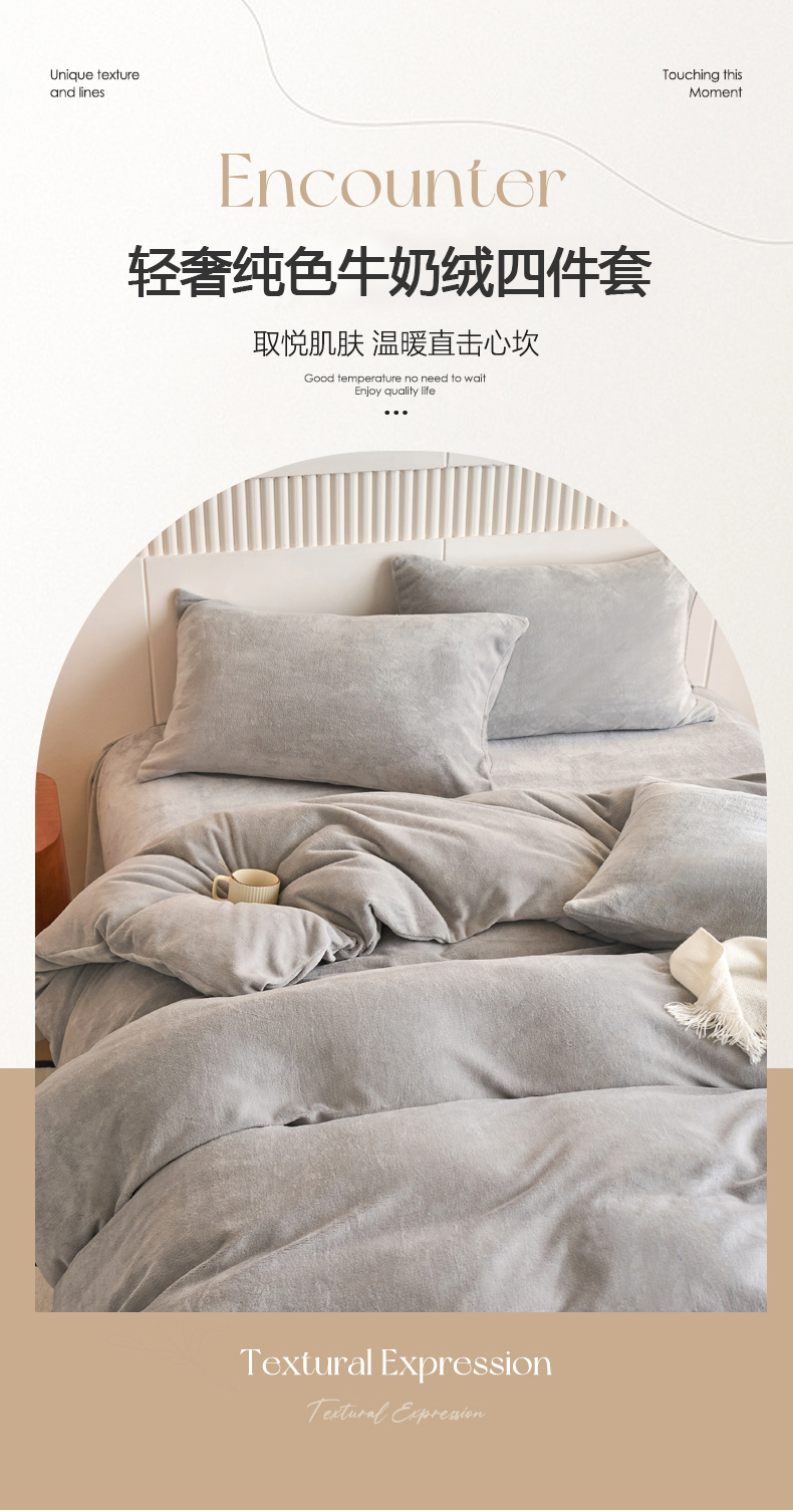 当前位置: 91家纺网 > 商品网购 > 床品套件 > 四件套 > 牛奶绒四件套 > 乐居家纺 2025新款200克重纯色单面绒牛奶绒四件套 绅士灰