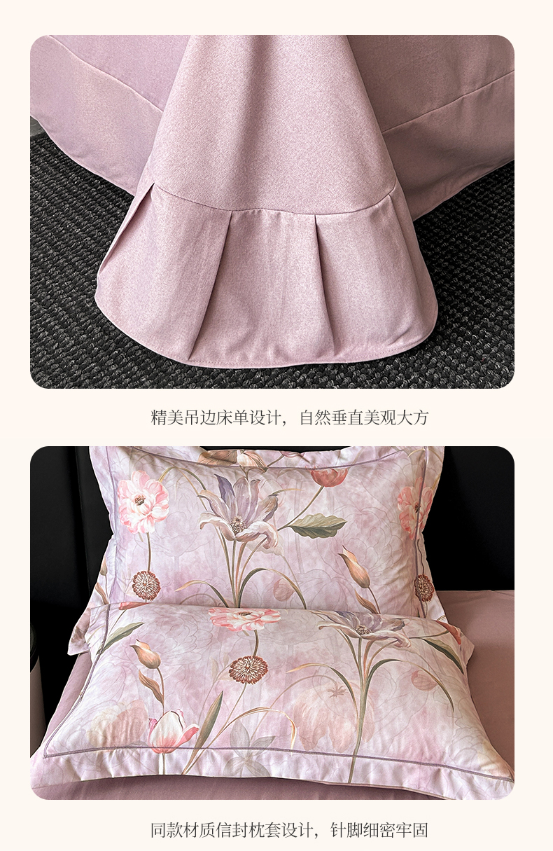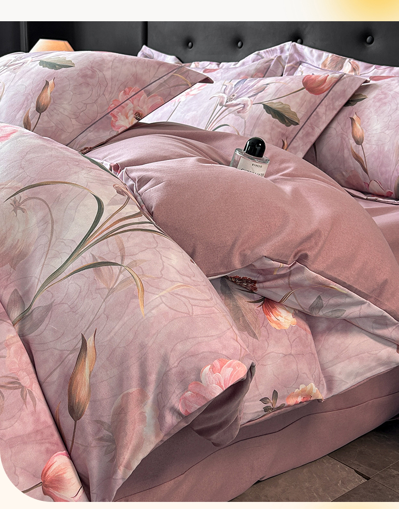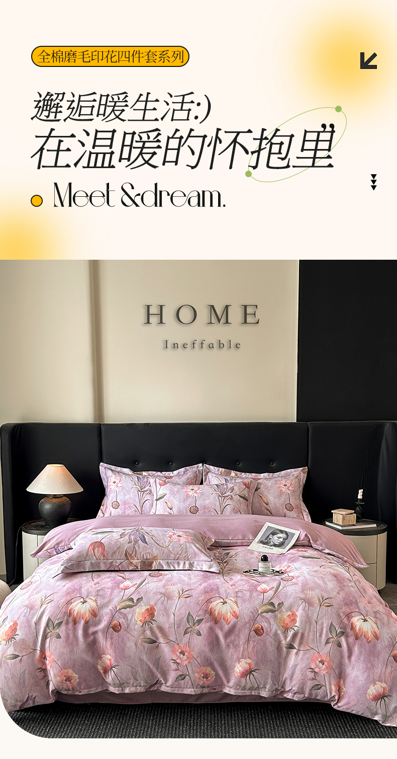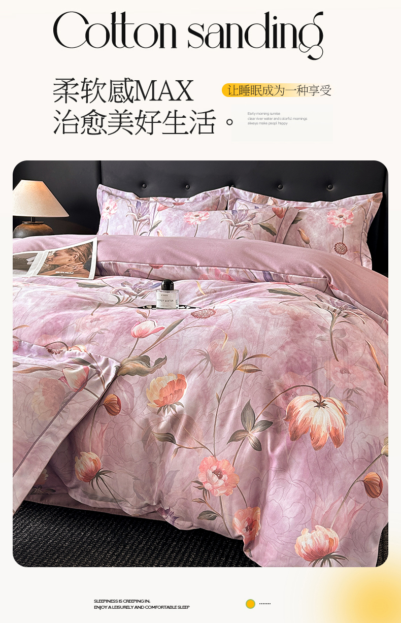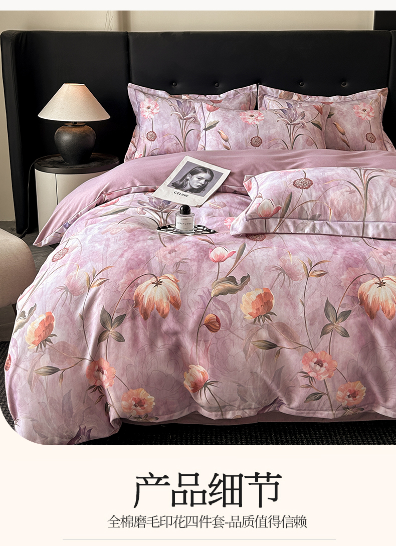 玉海棠家纺 2025新款数码印花加厚全棉磨毛四件套 微风紫藤