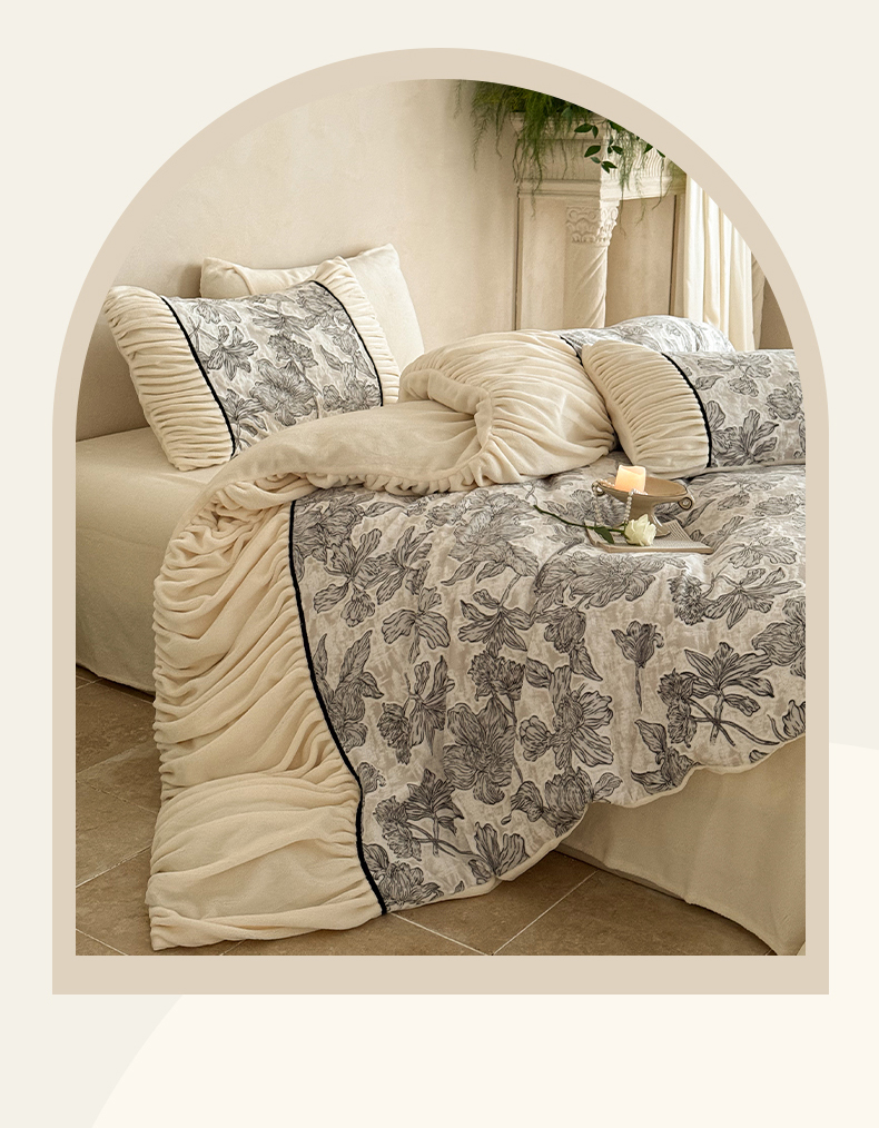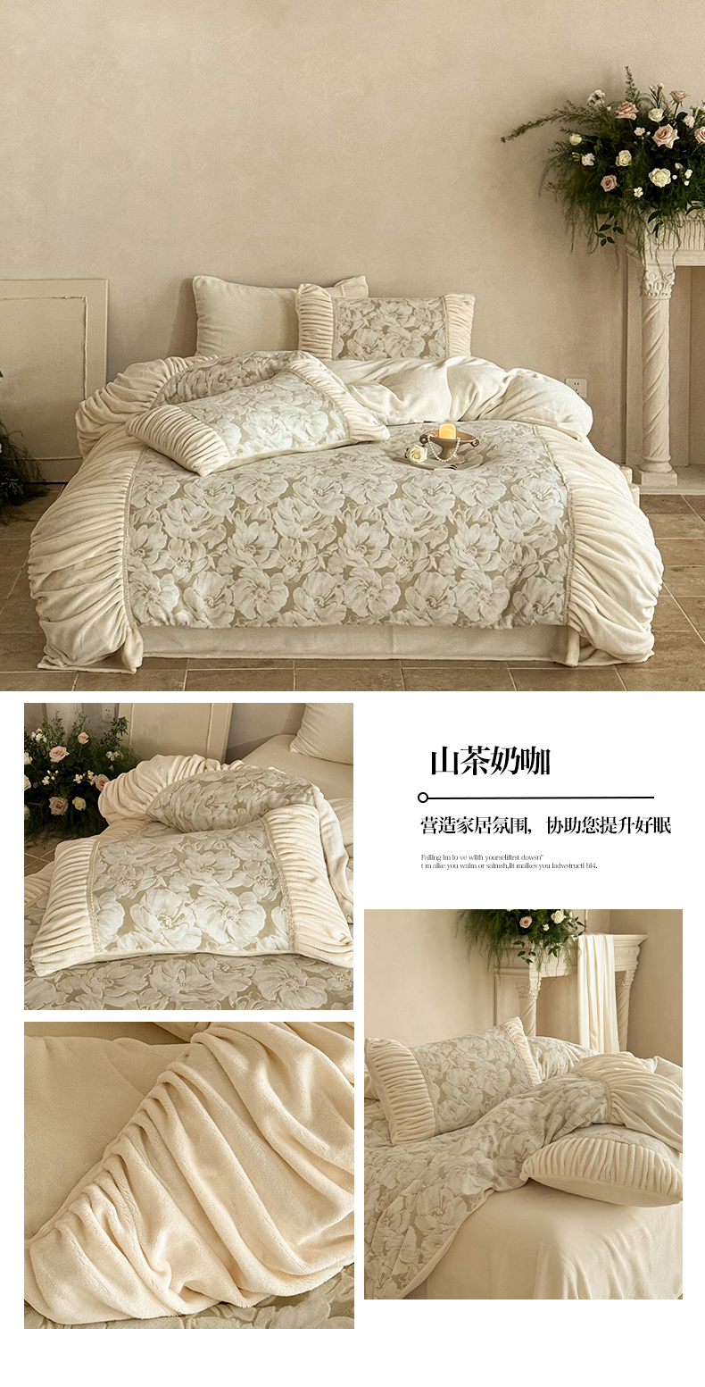 当前位置: 91家纺网 > 商品网购 > 床品套件 > 四件套 > 牛奶绒四件套 > 圆岛家纺 2025新款复古法式雕花高克重牛奶绒四件套 花枝墨