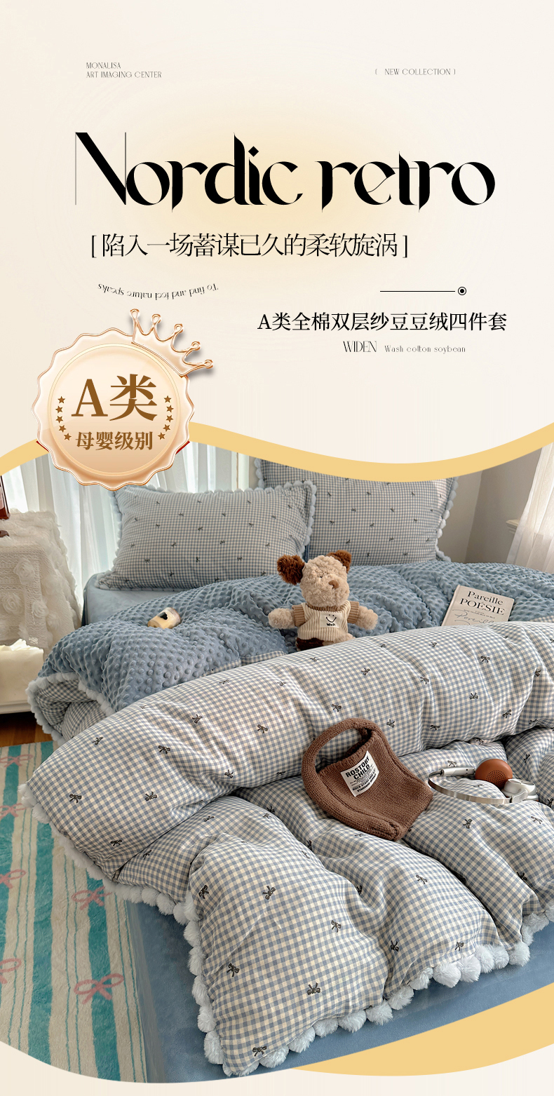 (总) Sweet dreams甜梦 2025新款A类双层纱豆豆绒棉加绒四件套,花梦时,童趣王国,温婉话语,郁金花海