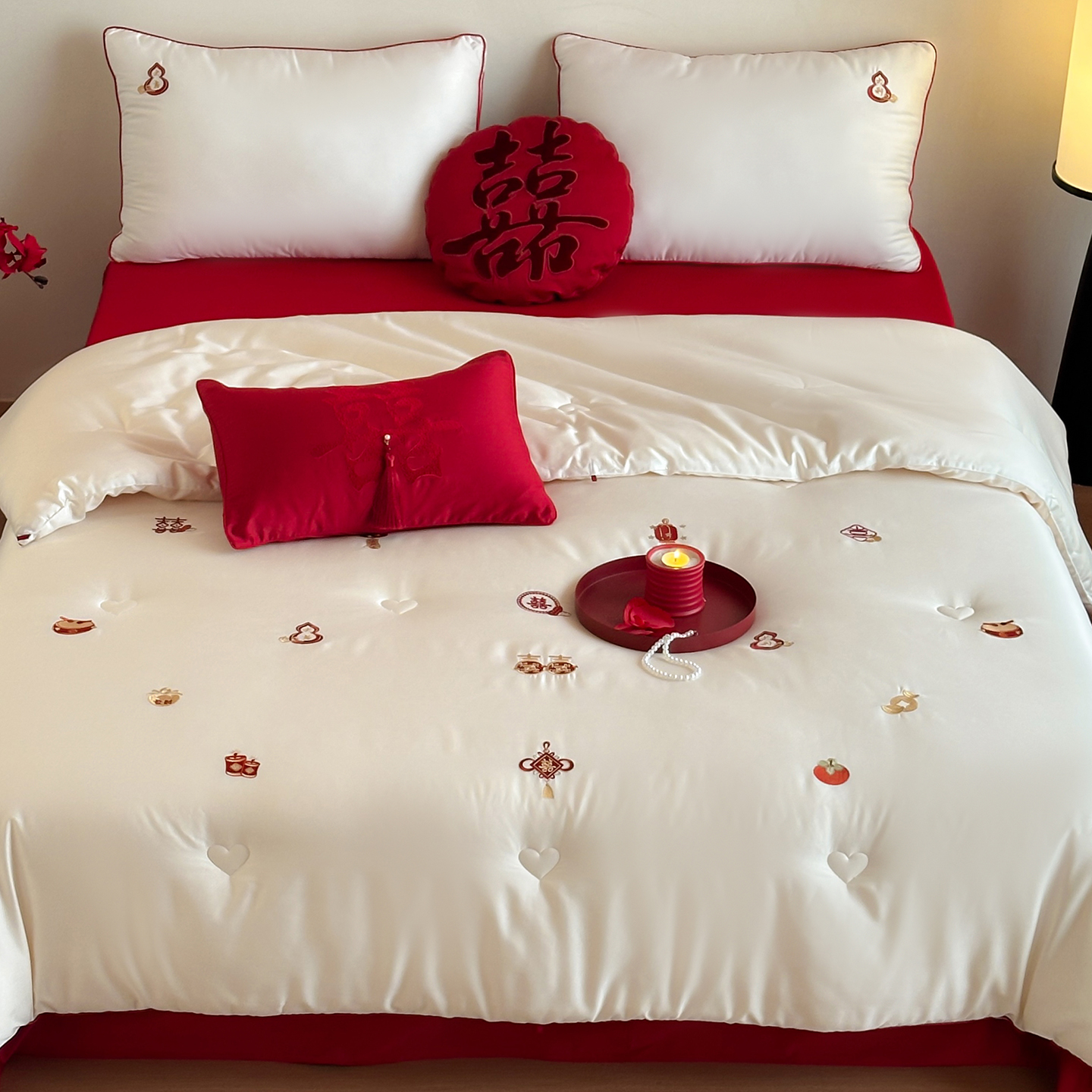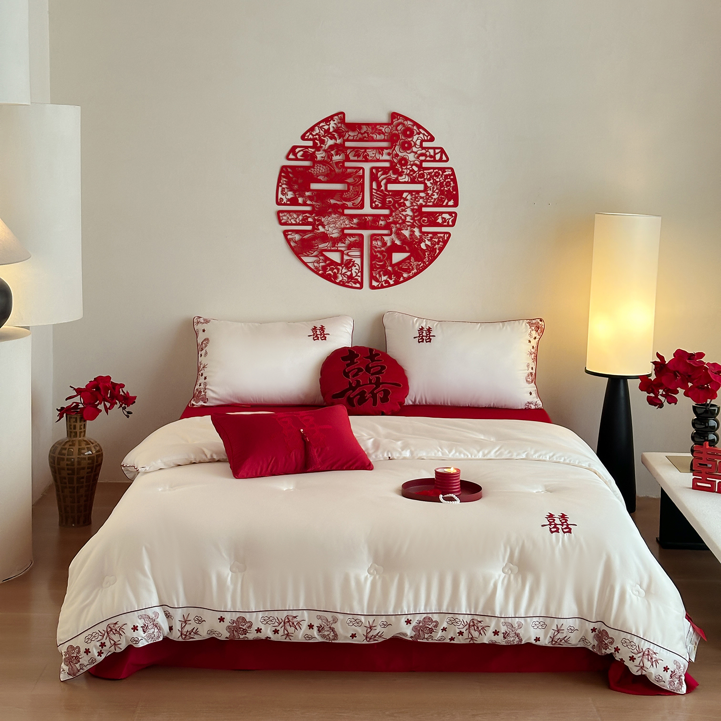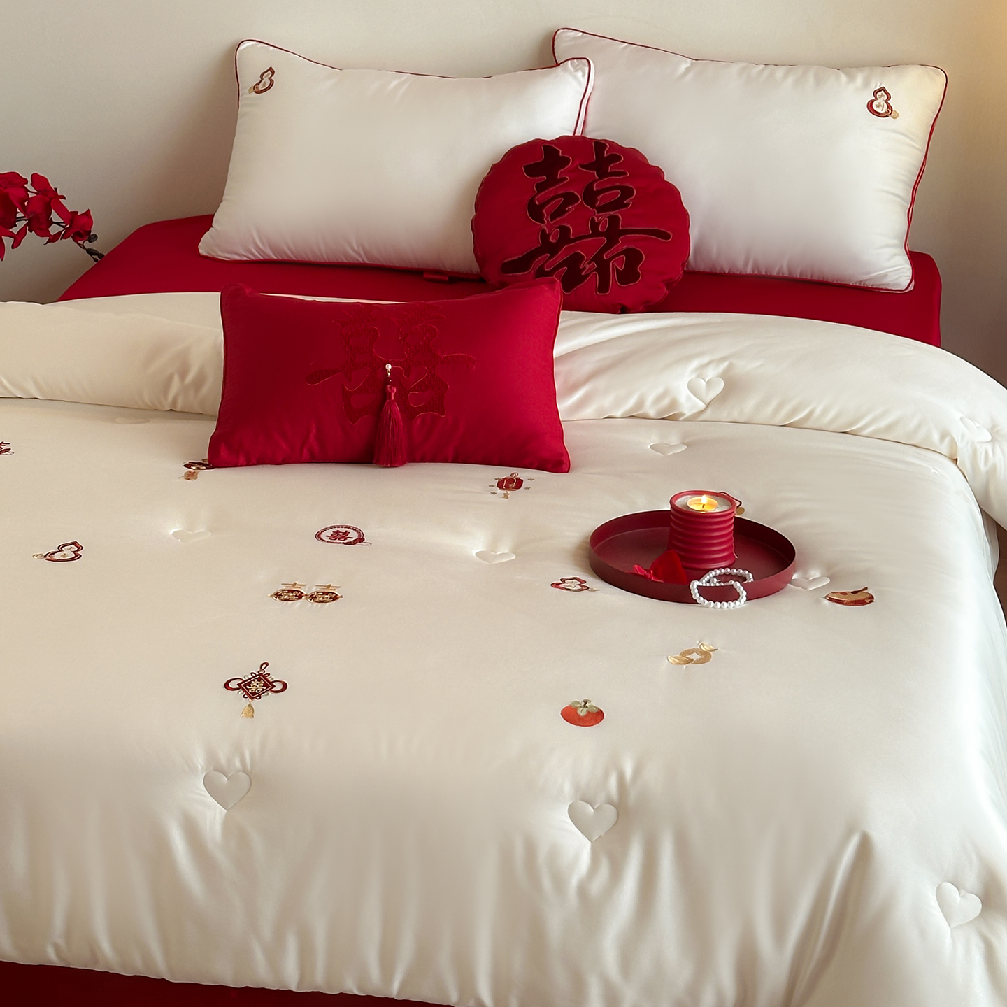 商品名称:江涞 2025新款50S贡缎大豆抑菌婚庆喜被被子被芯 圆满-大豆被