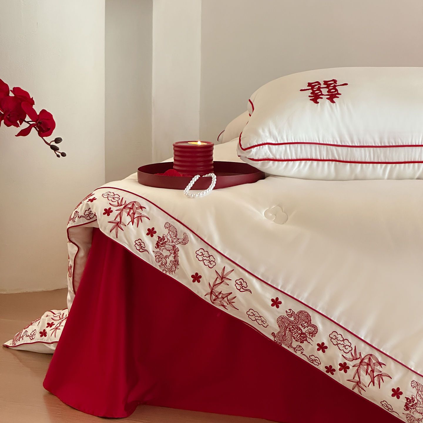 (总)江涞 2026新款100支长绒棉进口高端刺绣可摘卸流苏四件套-迎喜(淘宝券后不低于 418/438),迎喜