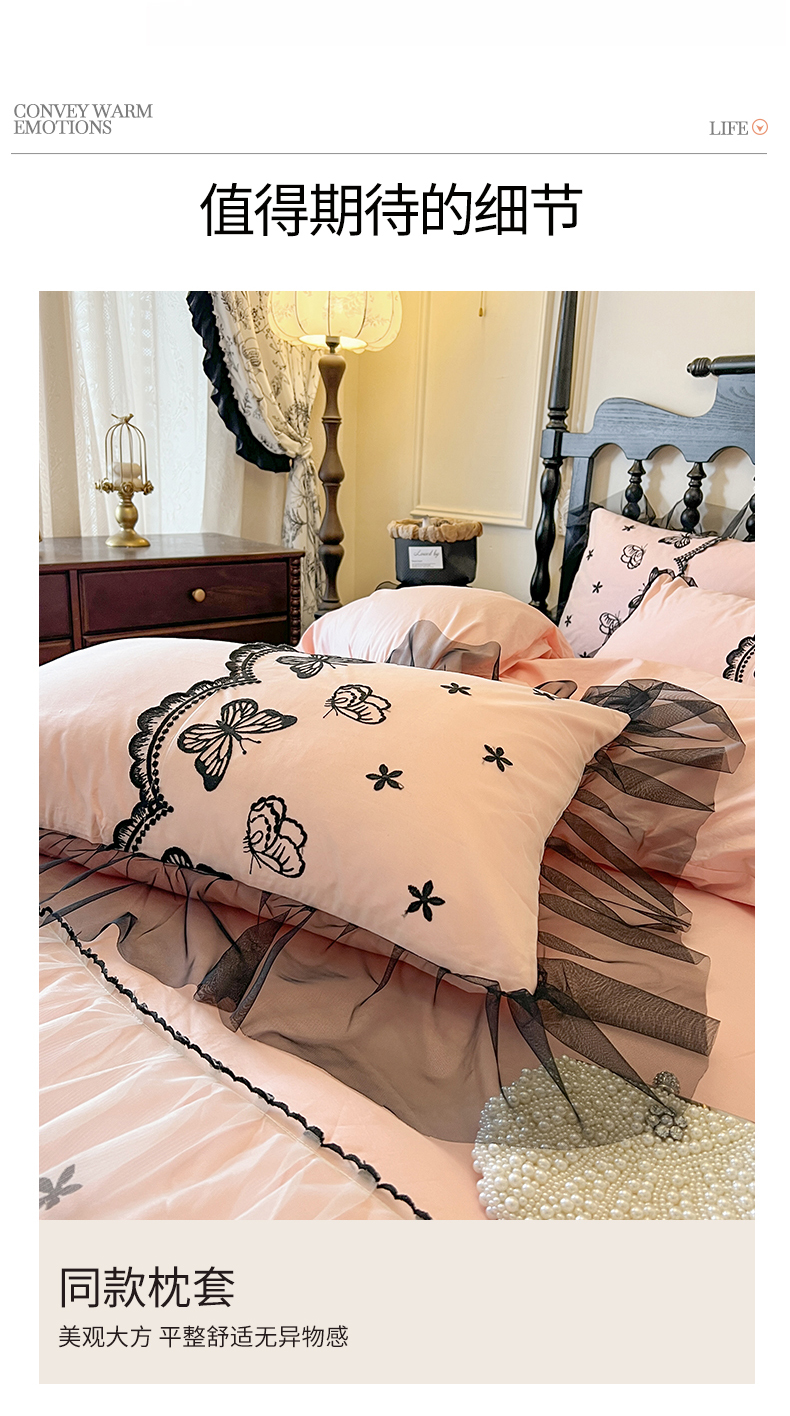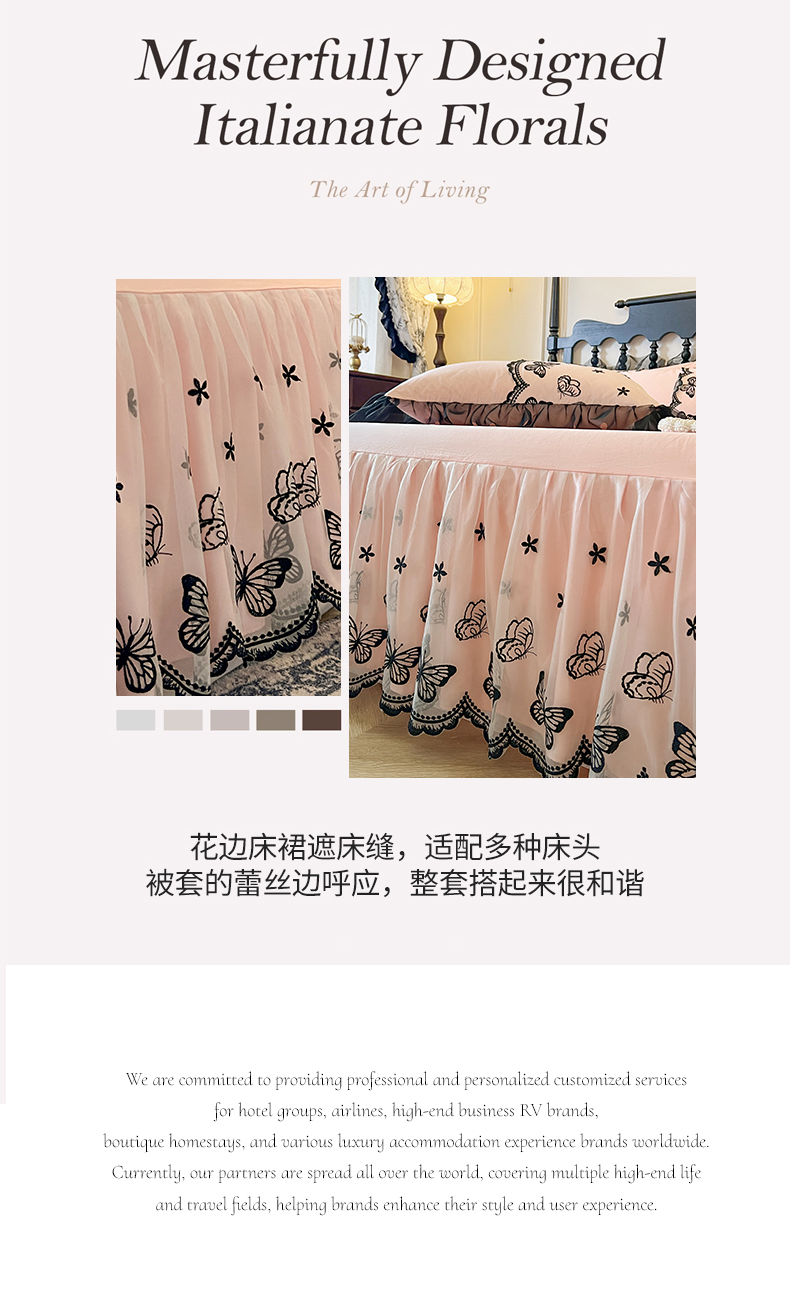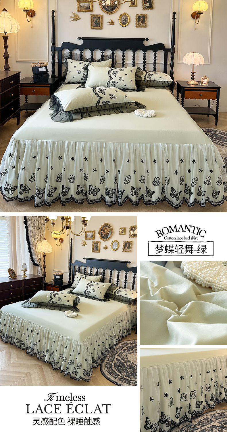 商品名称:网红馆(ck家纺) 2025新款全棉纯棉蕾丝边单床裙 床裙单件-梦蝶轻舞 梦蝶轻舞-粉