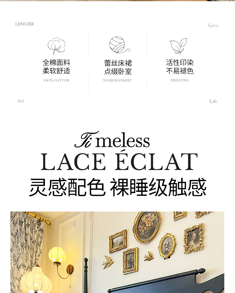 (总)网红馆(ck家纺) 2026新款全棉蕾丝花边床裙款床笠晨暮花间系列,绯红,粉色,麦绿,米色,浅紫,雾蓝