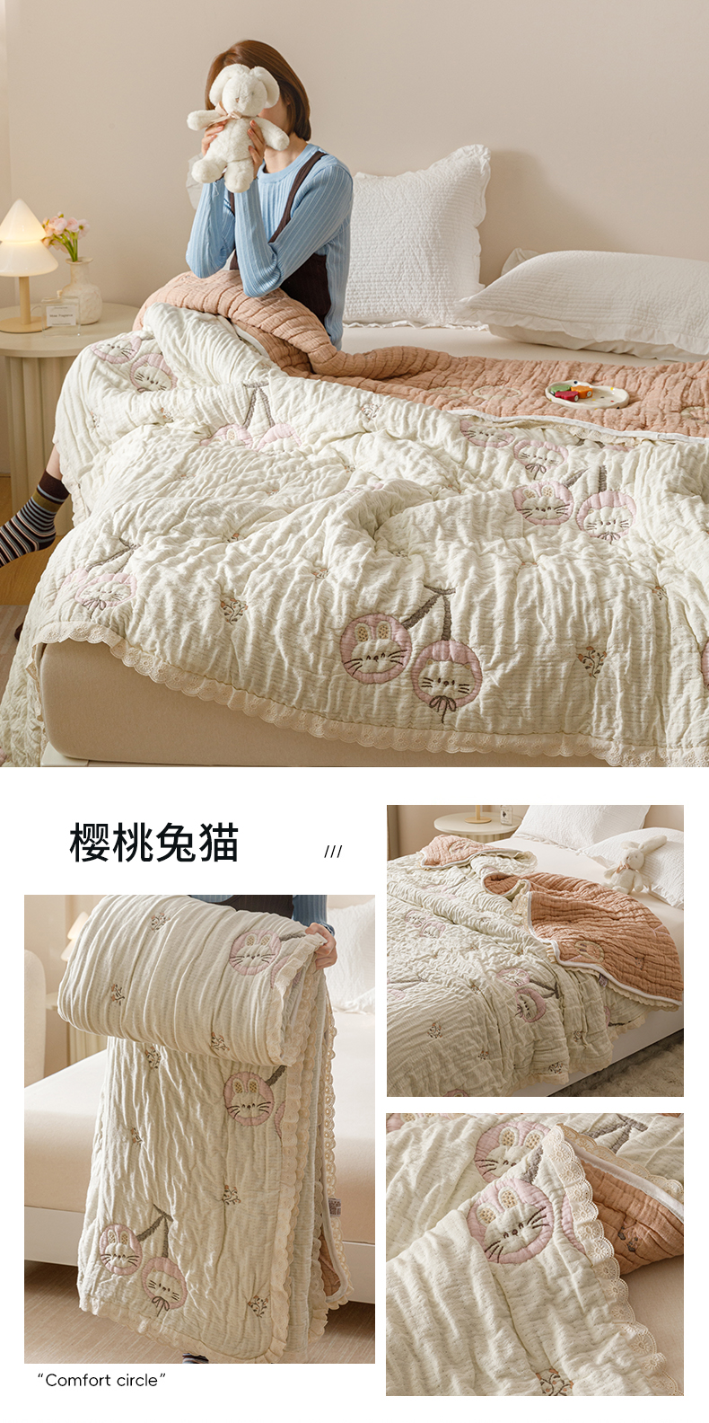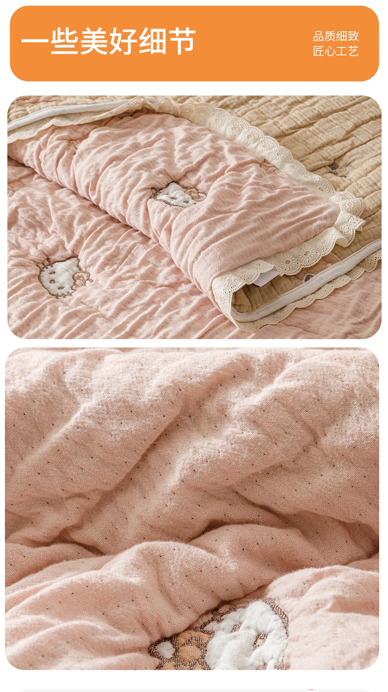 商品名称:麻依 2025新款卡通安心棉泡芙被十层全棉纱布被子被芯 团团KT