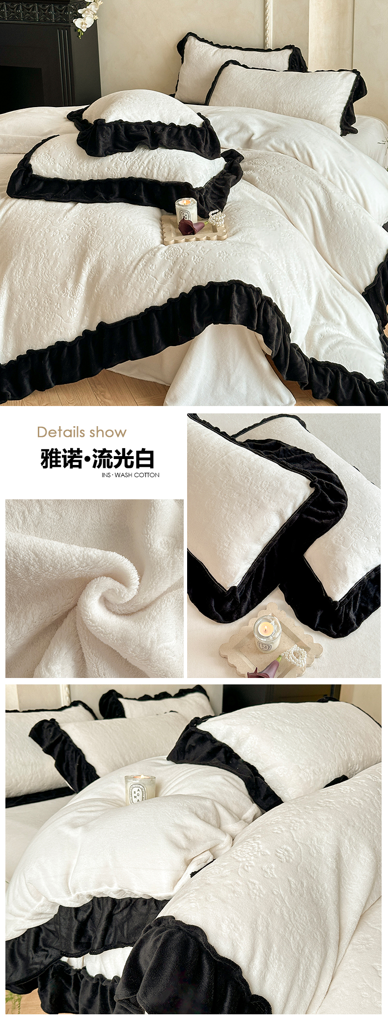 当前位置: 91家纺网 > 商品网购 > 床品套件 > 四件套 > 牛奶绒四件套 > 逸尚阁 2025新款高克重雕花牛奶绒四件套-雅诺 雅诺·流光白